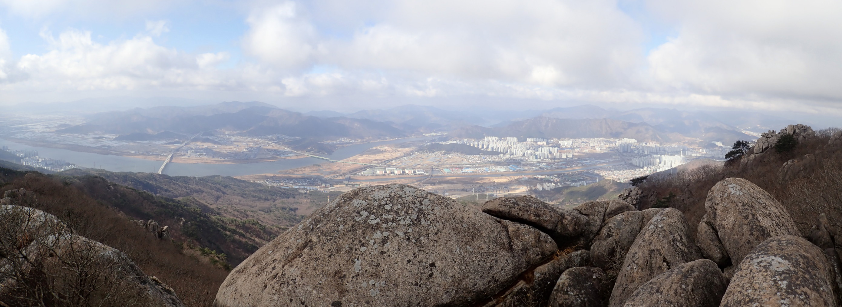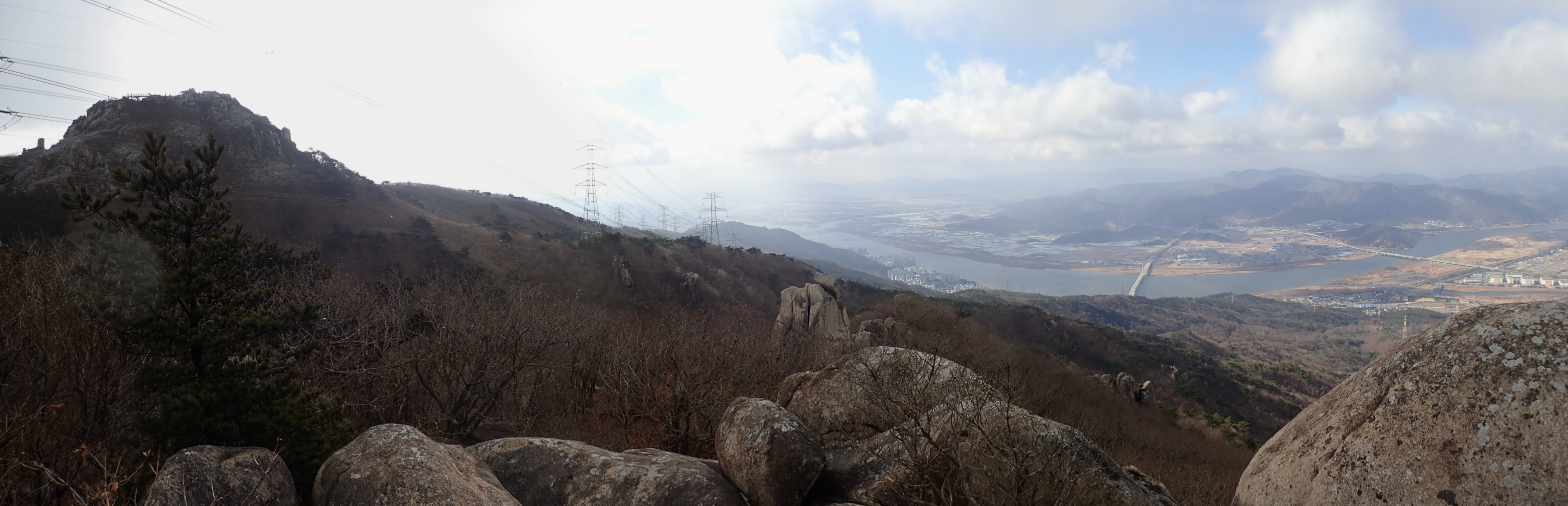 남서쪽. 왼쪽 고당봉과 오른쪽 낙동대교.