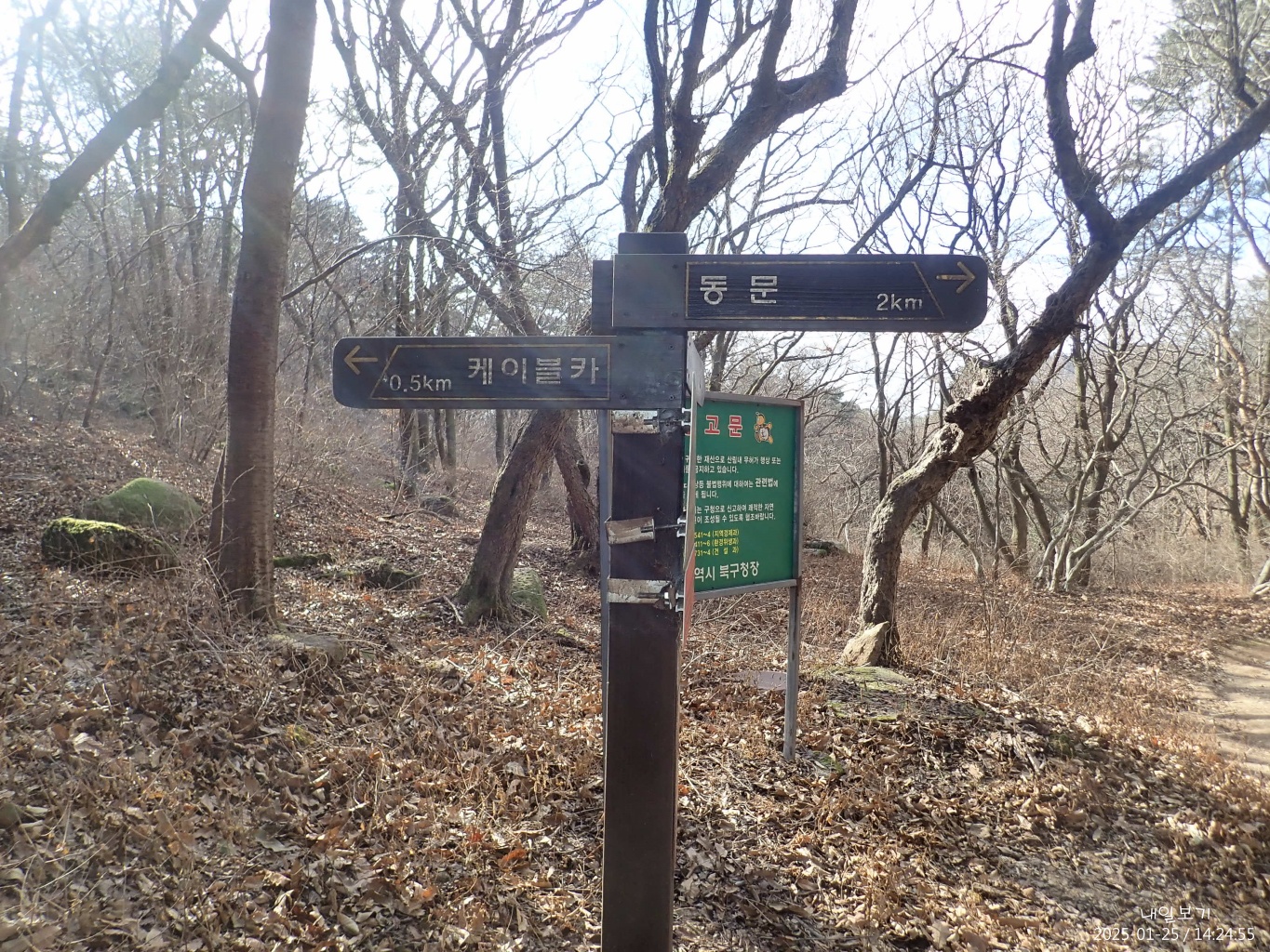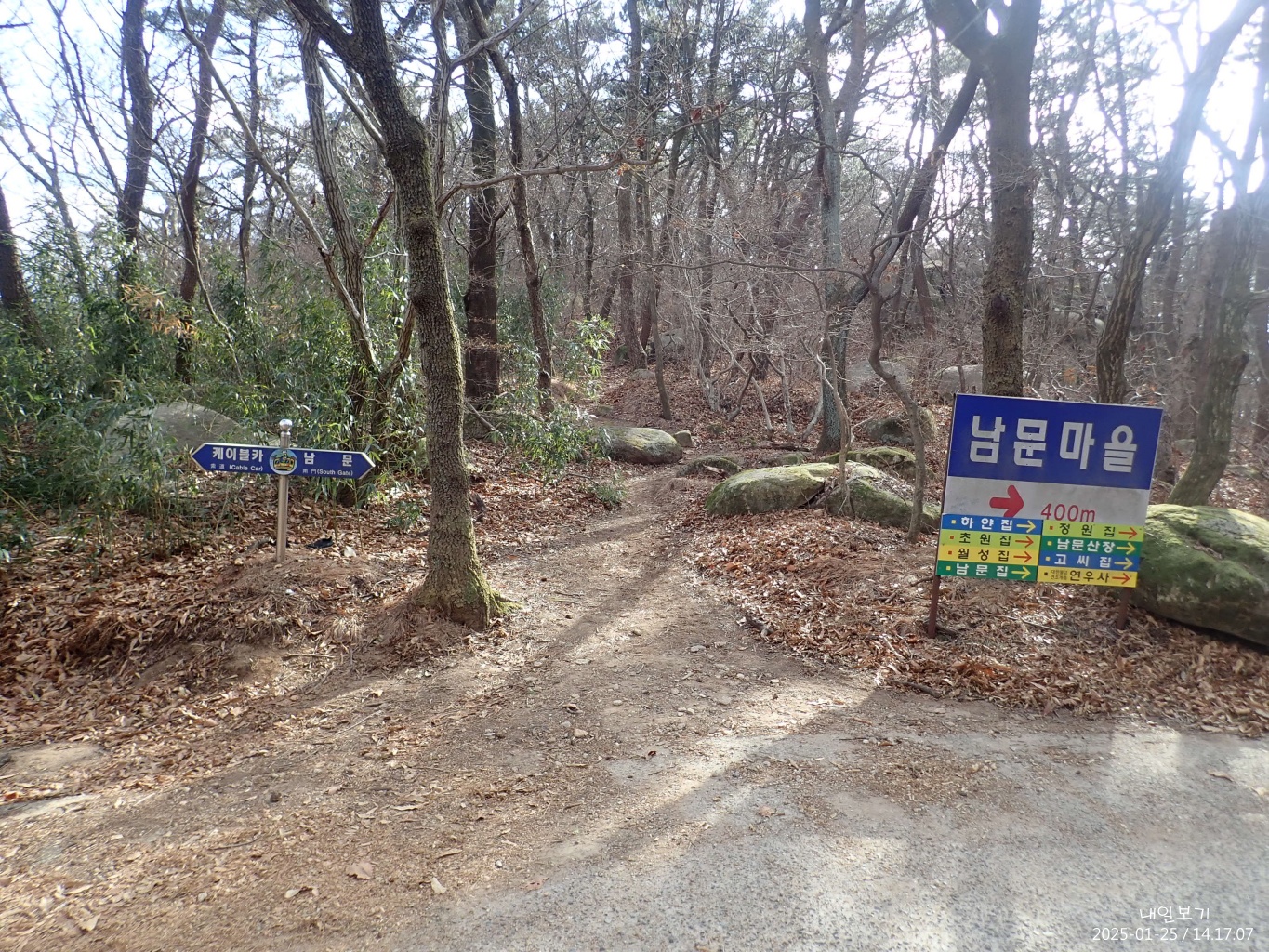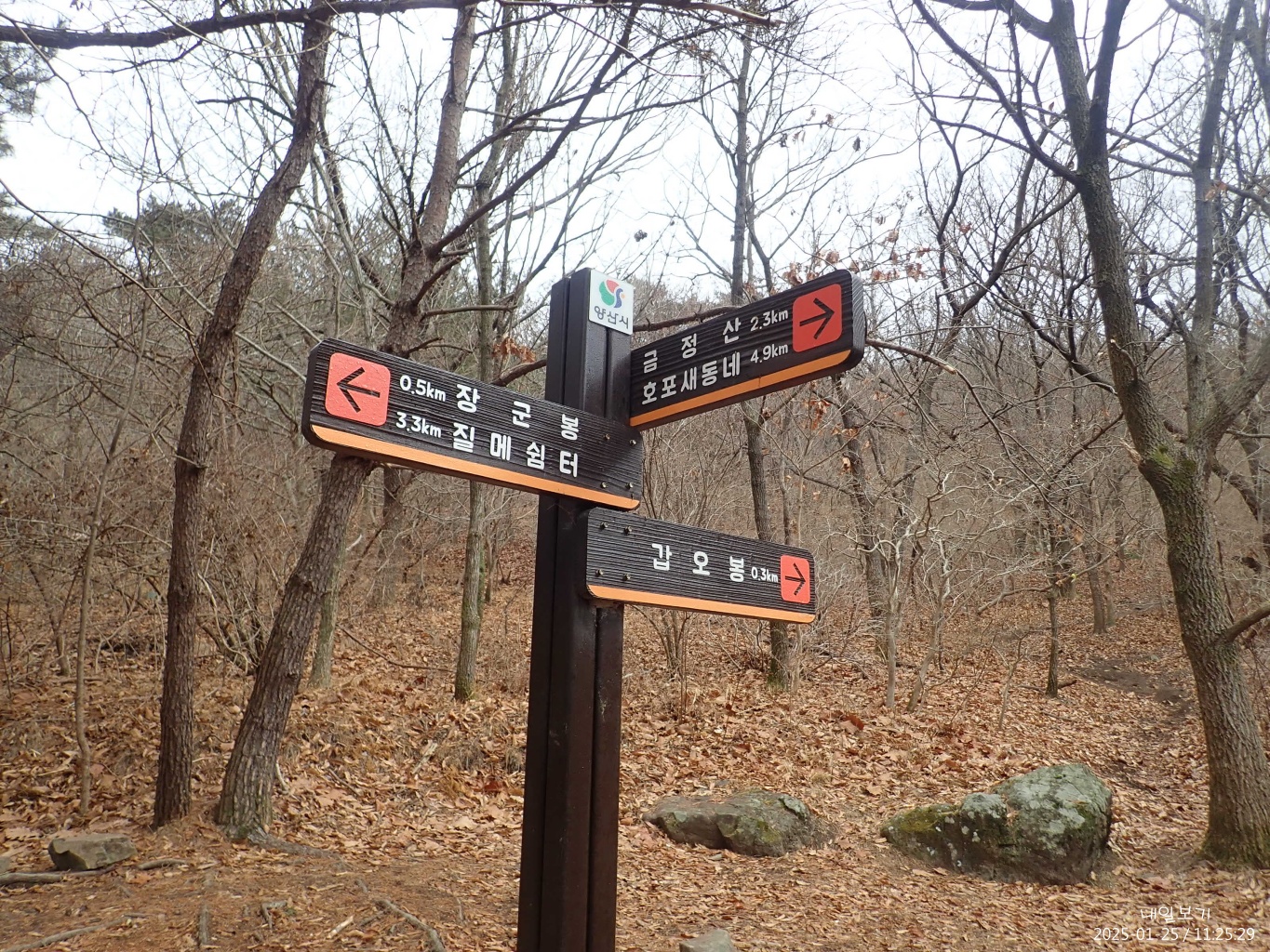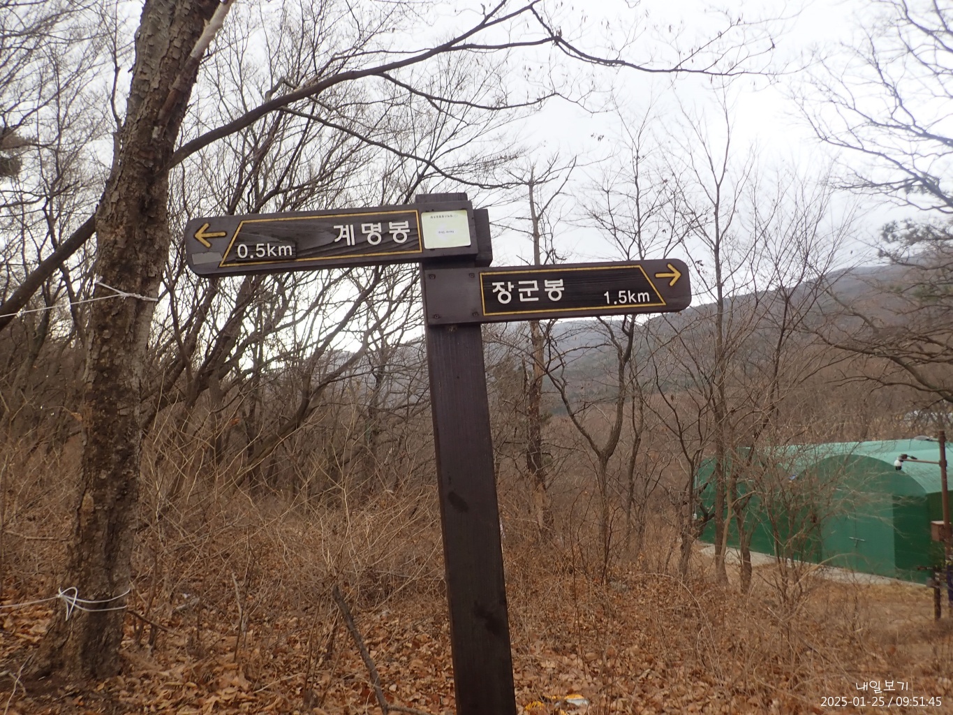 장군봉에서 내려오는 길과 만나는곳 이정목.