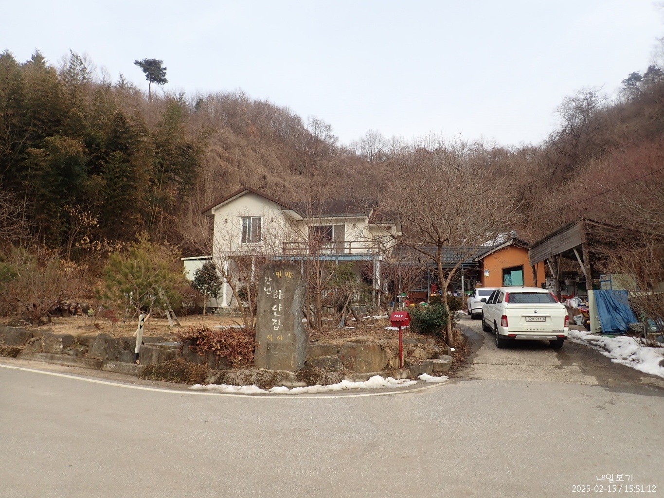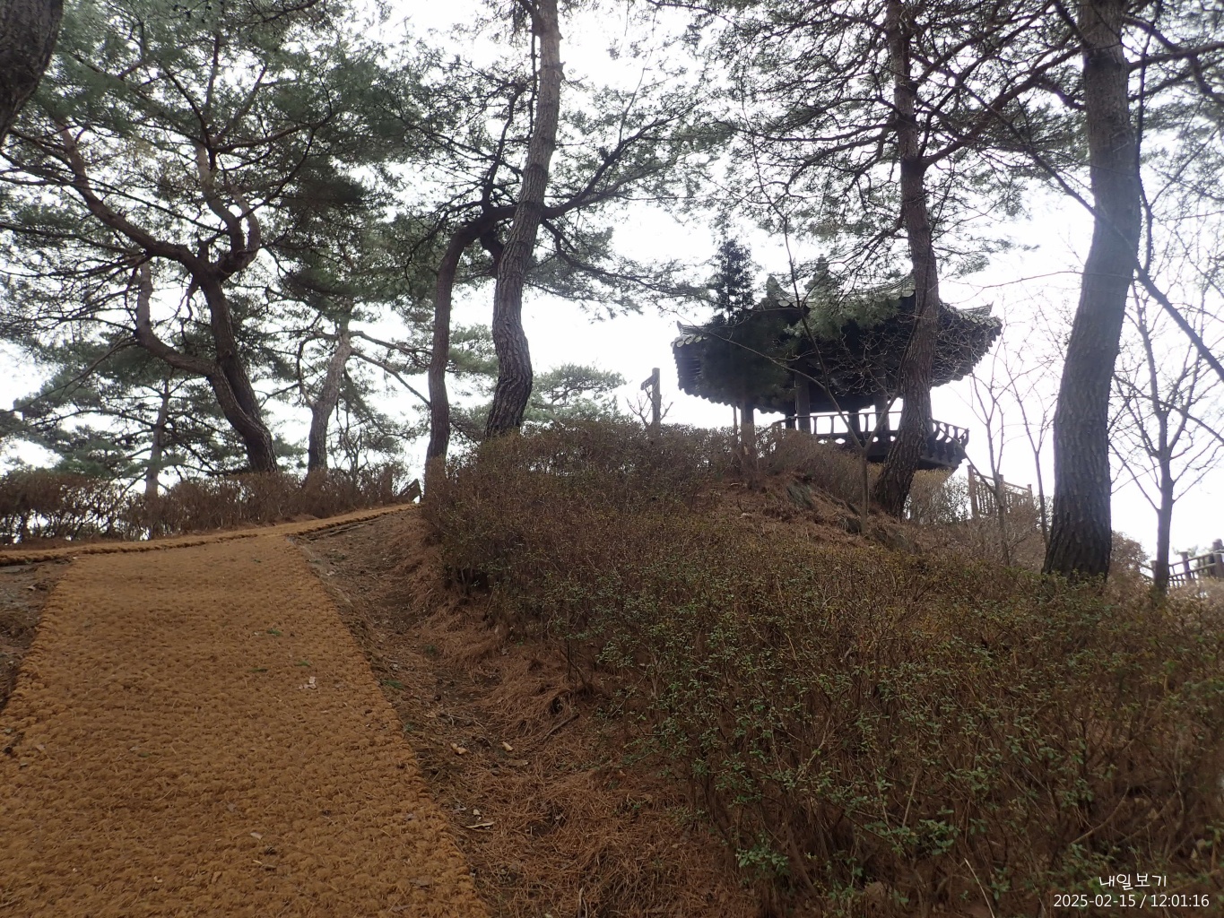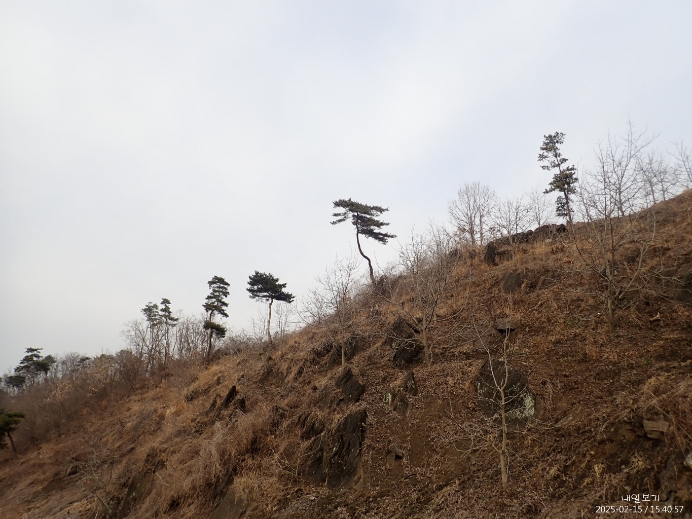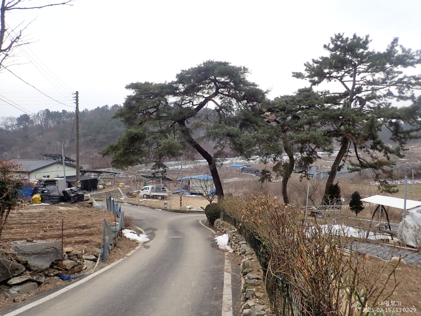 뒤돌아 보다. 오른쪽 소나무있는 곳은 공사중인데, 카카오지도를 보니 가야사(절)로 표시돼있다.