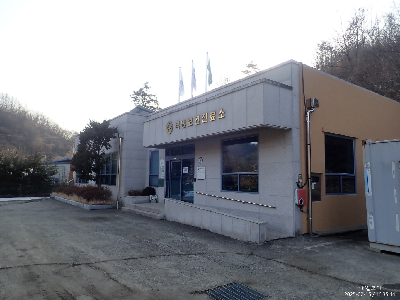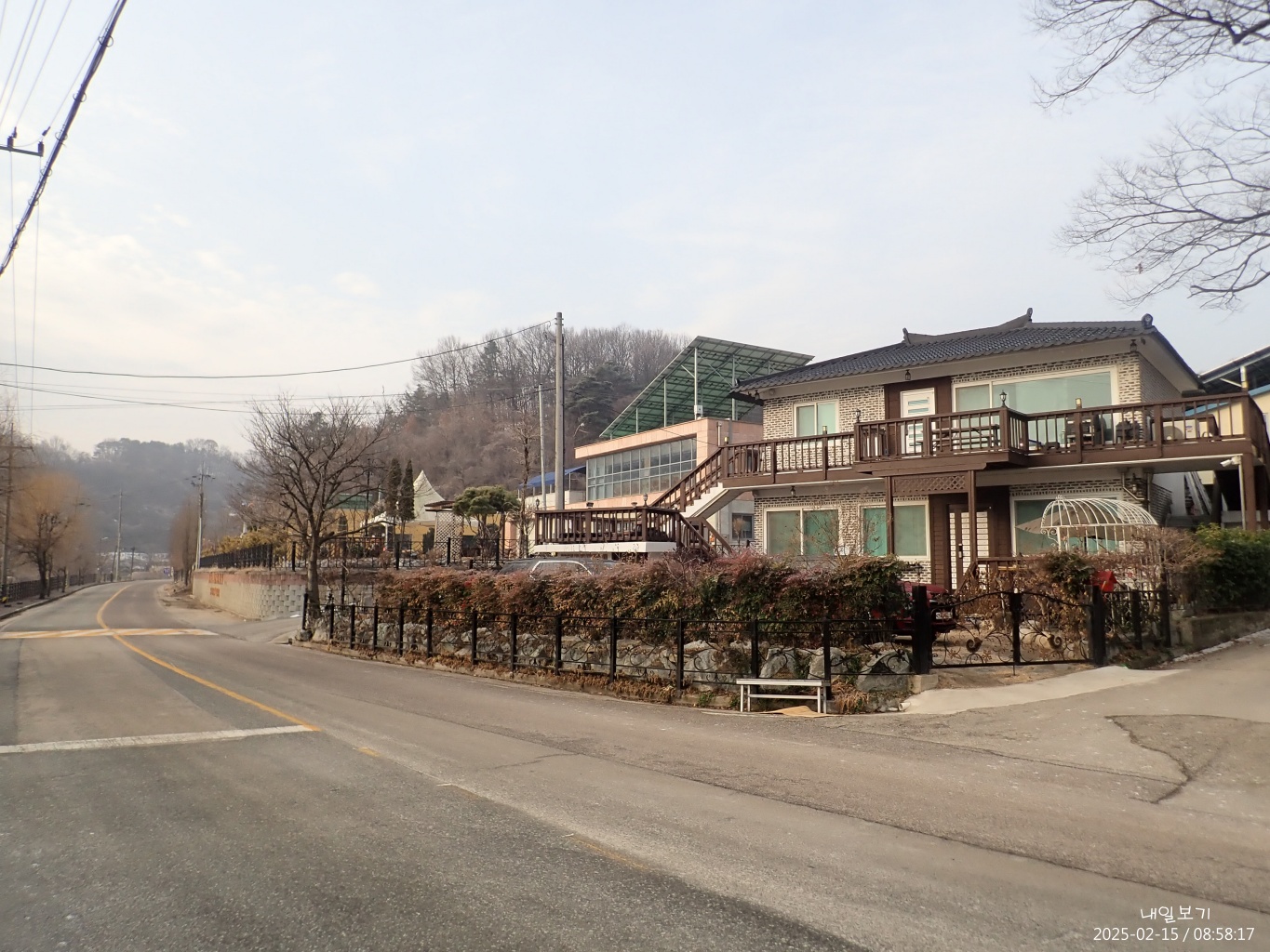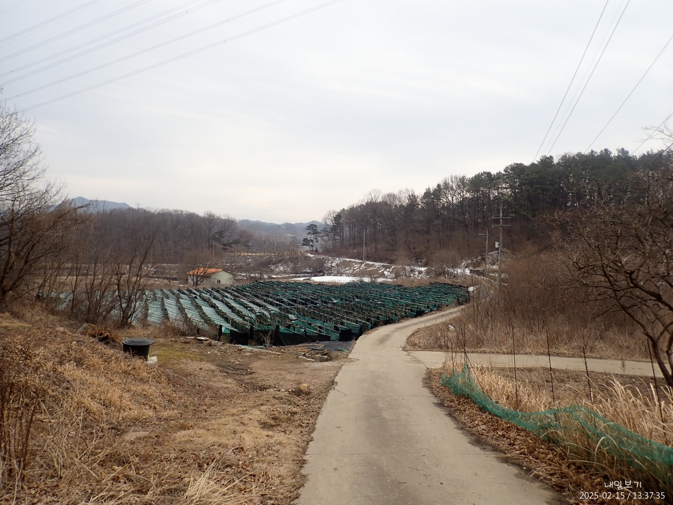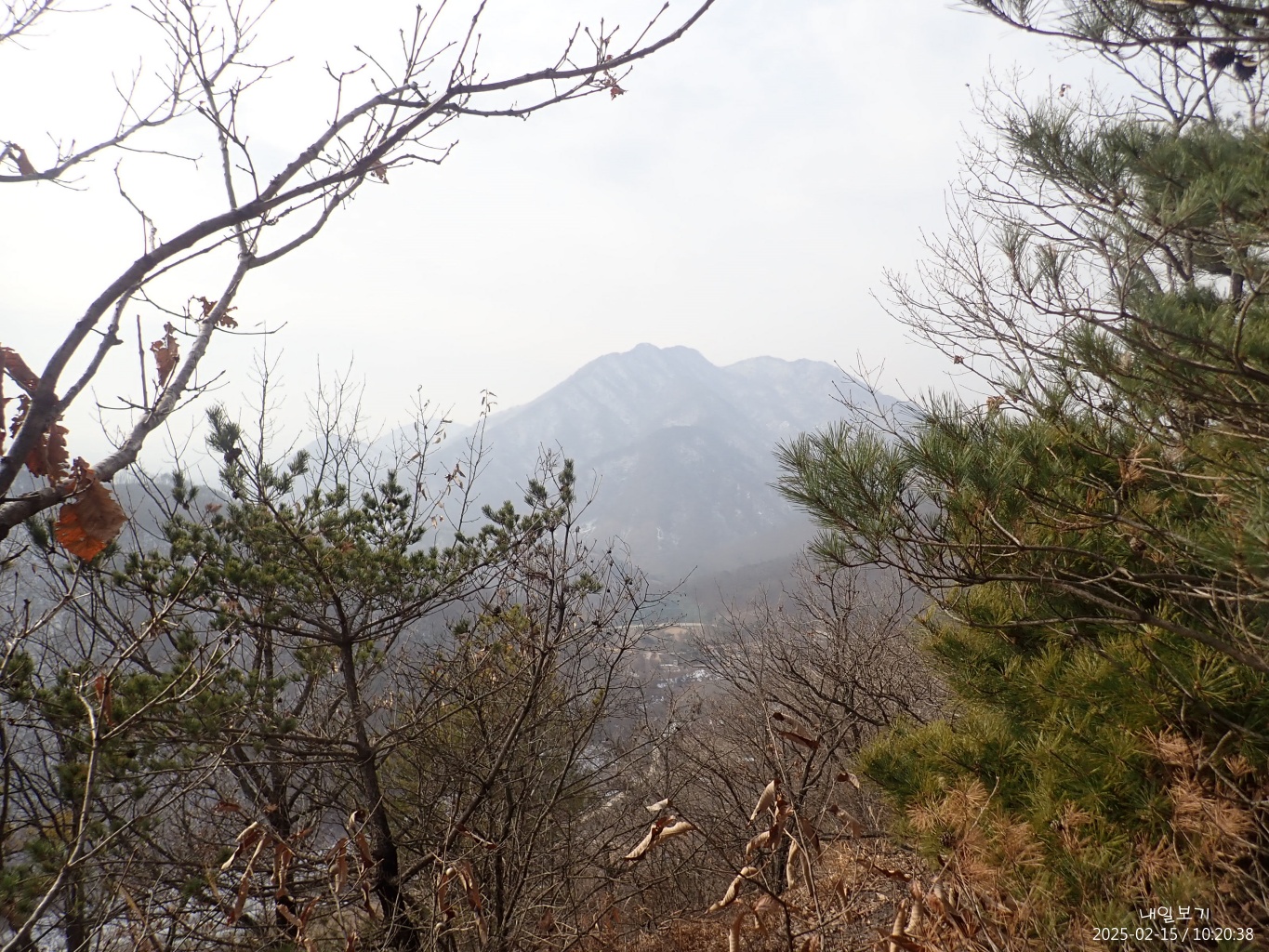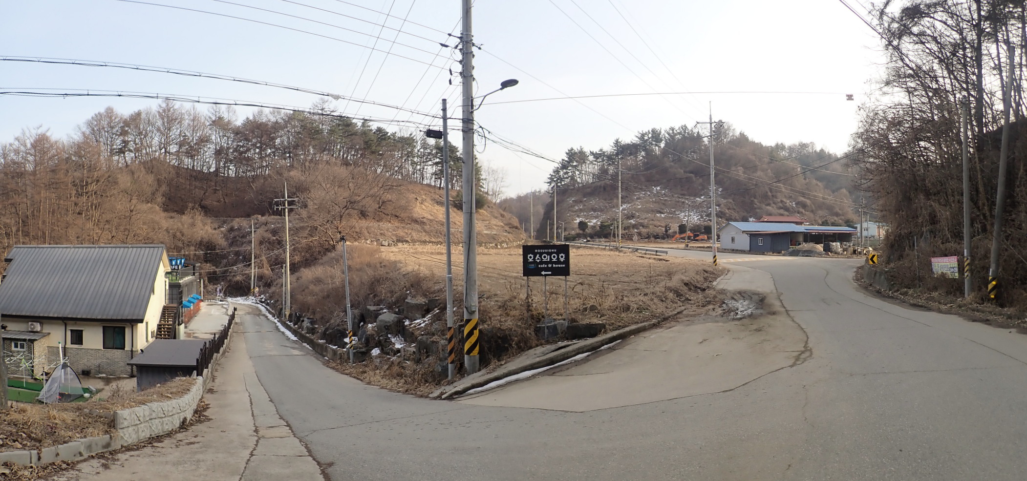 뒤돌아 보다. 오른쪽 소나무있는 곳은 공사중인데, 카카오지도를 보니 가야사(절)로 표시돼있다.