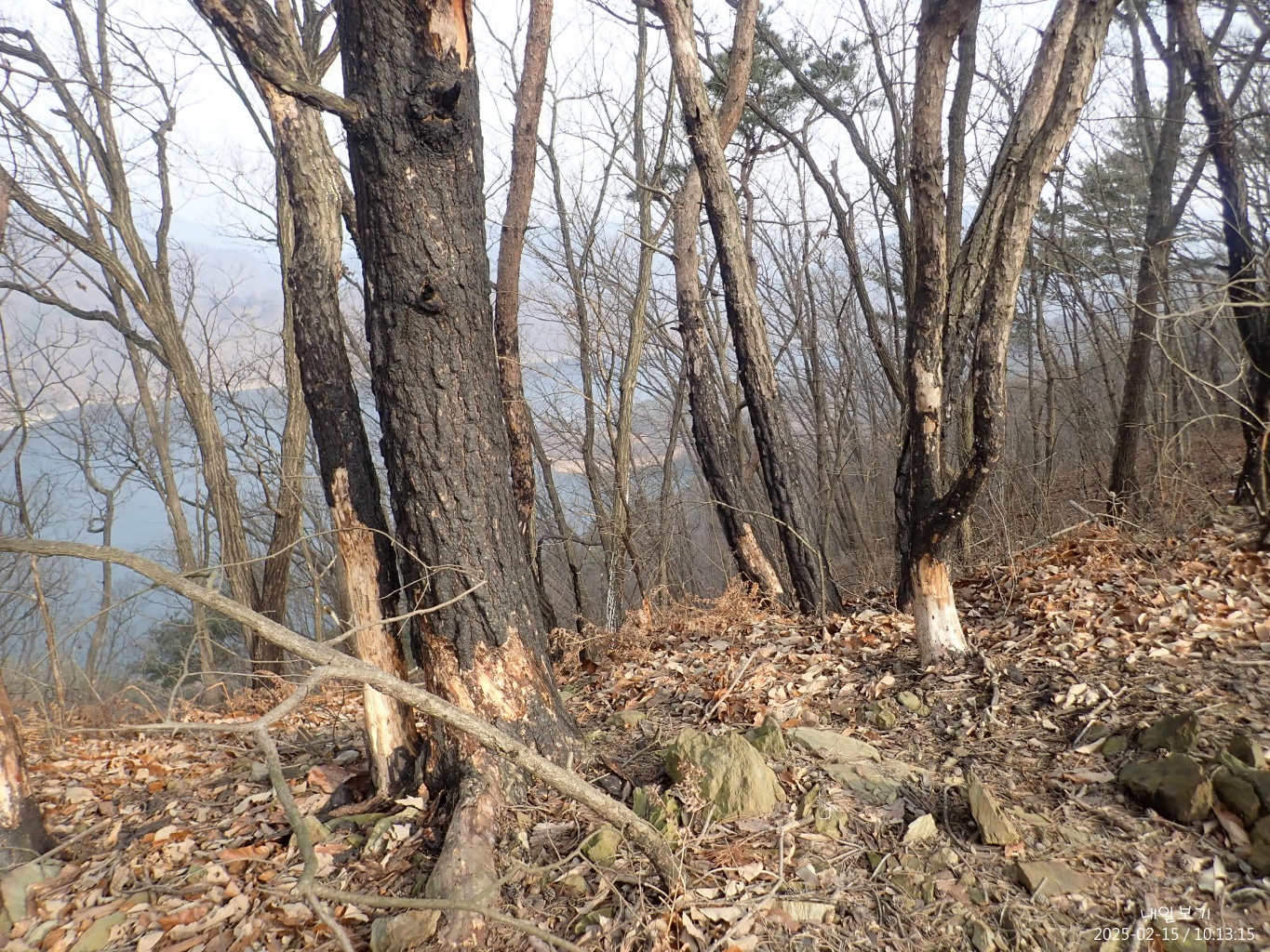 산불의 흔적이 있어 검색해보니 2023년 2월 낚시하던 사람의 담배불로 산불이 났었단다.
