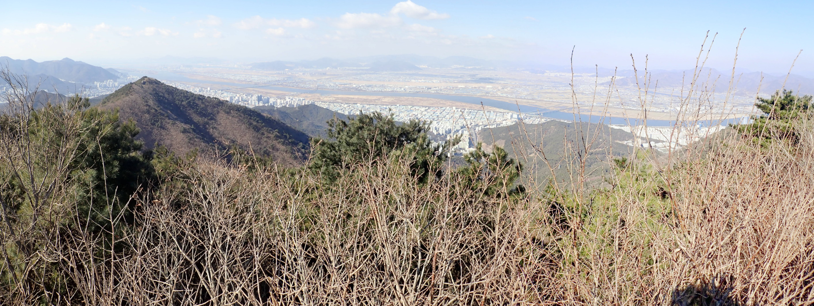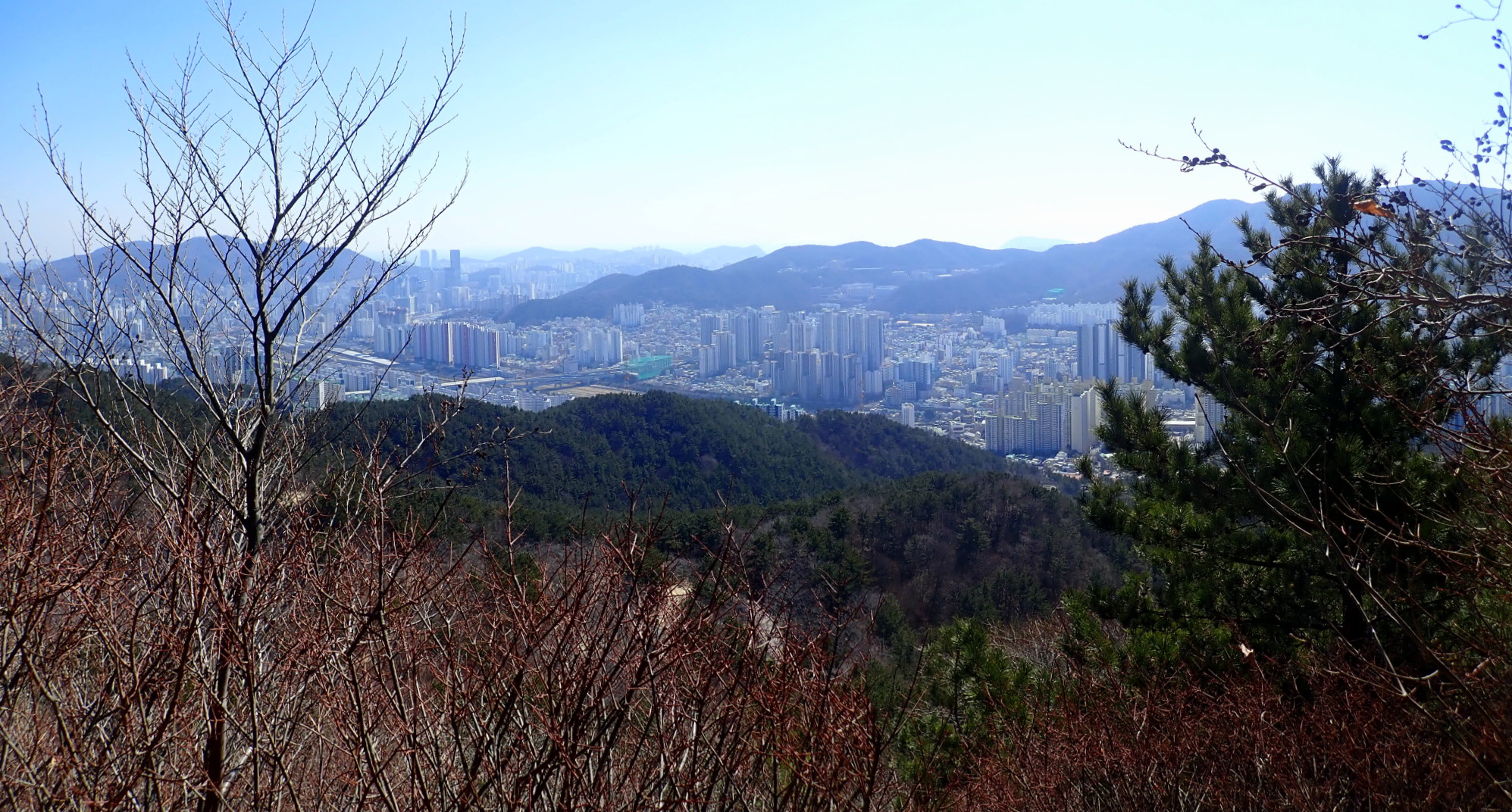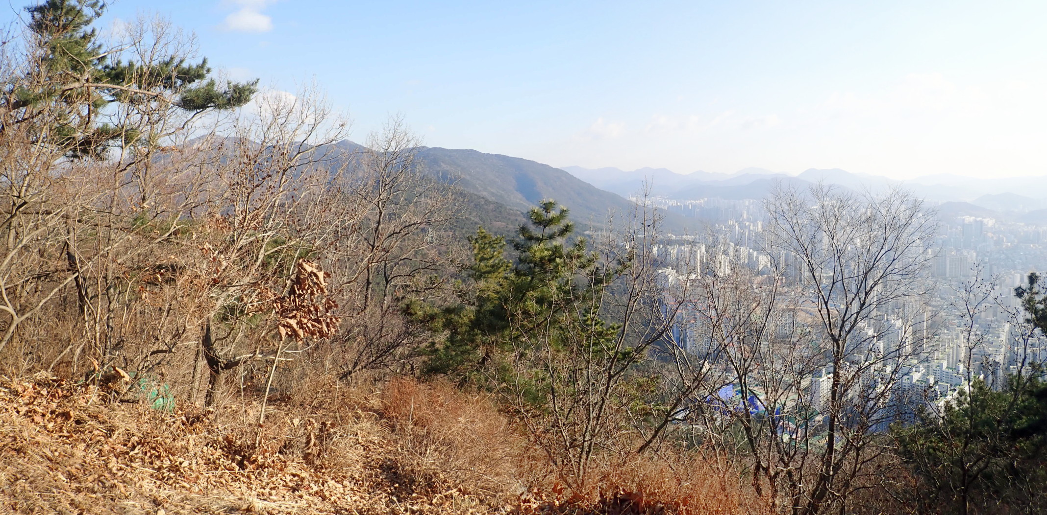갓봉에서 내려서며 남쪽. 부산진구 개금고개와 오른쪽 엄광산.