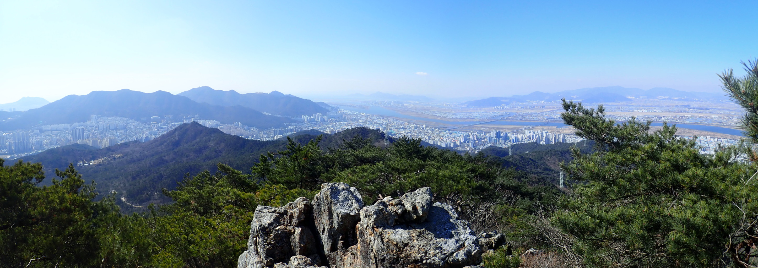 전망바위에서 북쪽. 금정산능선과 만덕동 일원. 왼쪽 멀리 낙동강과 신어산