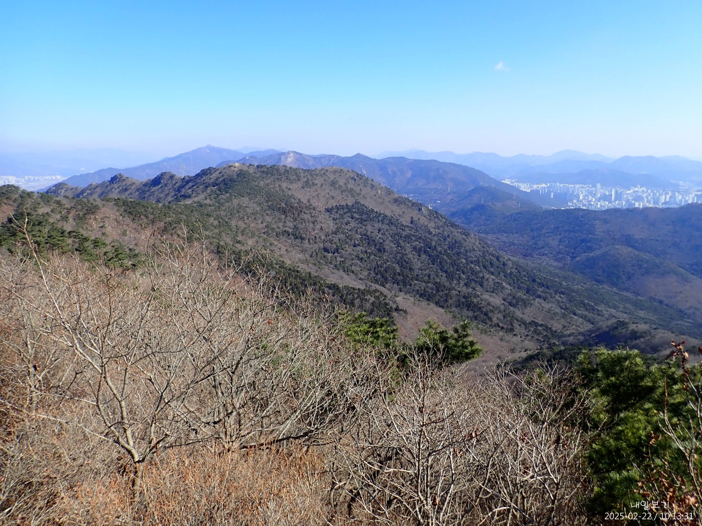 북쪽. 불태령과 그 뒤로 금정산능선