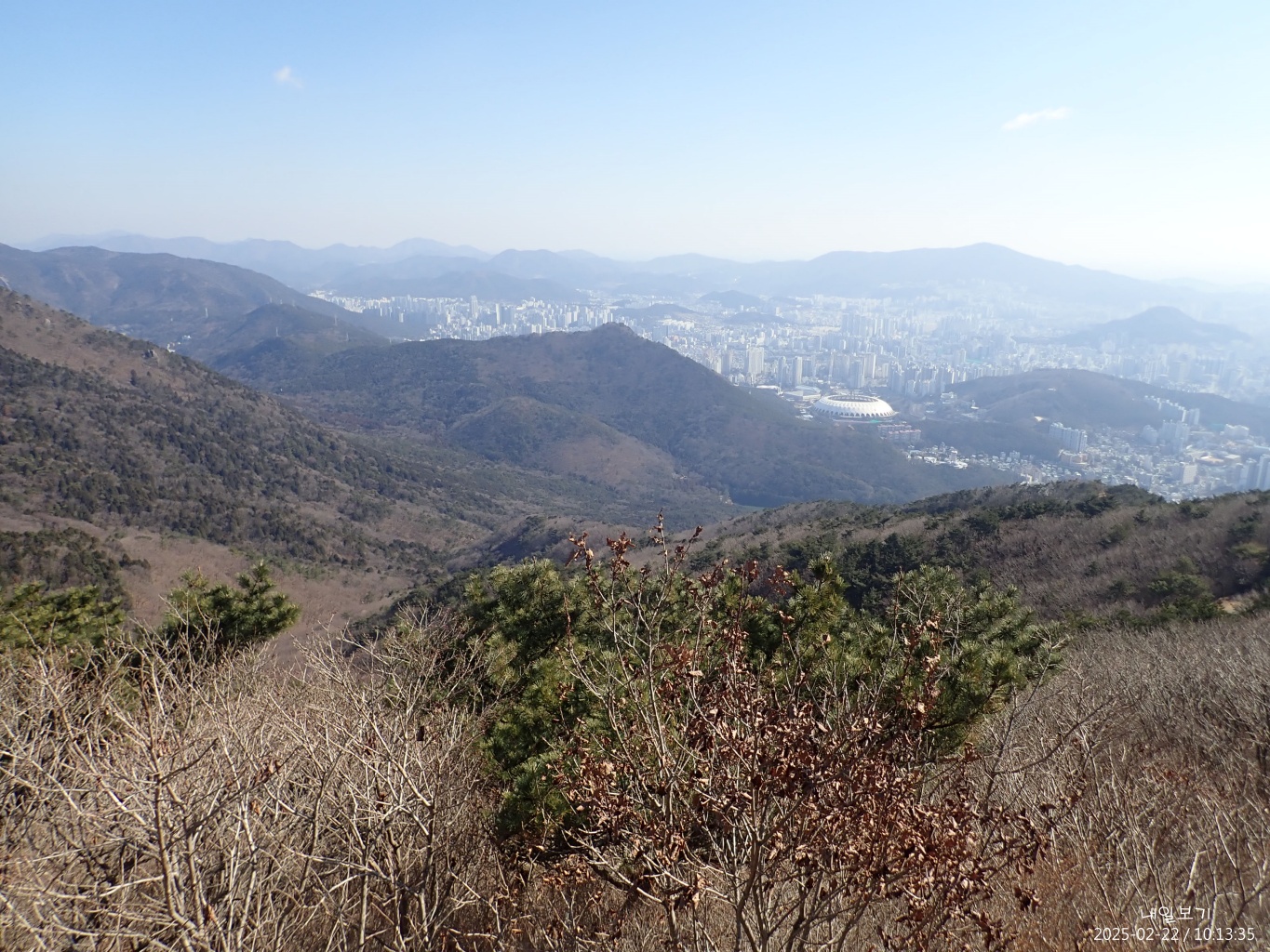 북쪽. 멀리 가운데 금정산과 가까이 불태령.