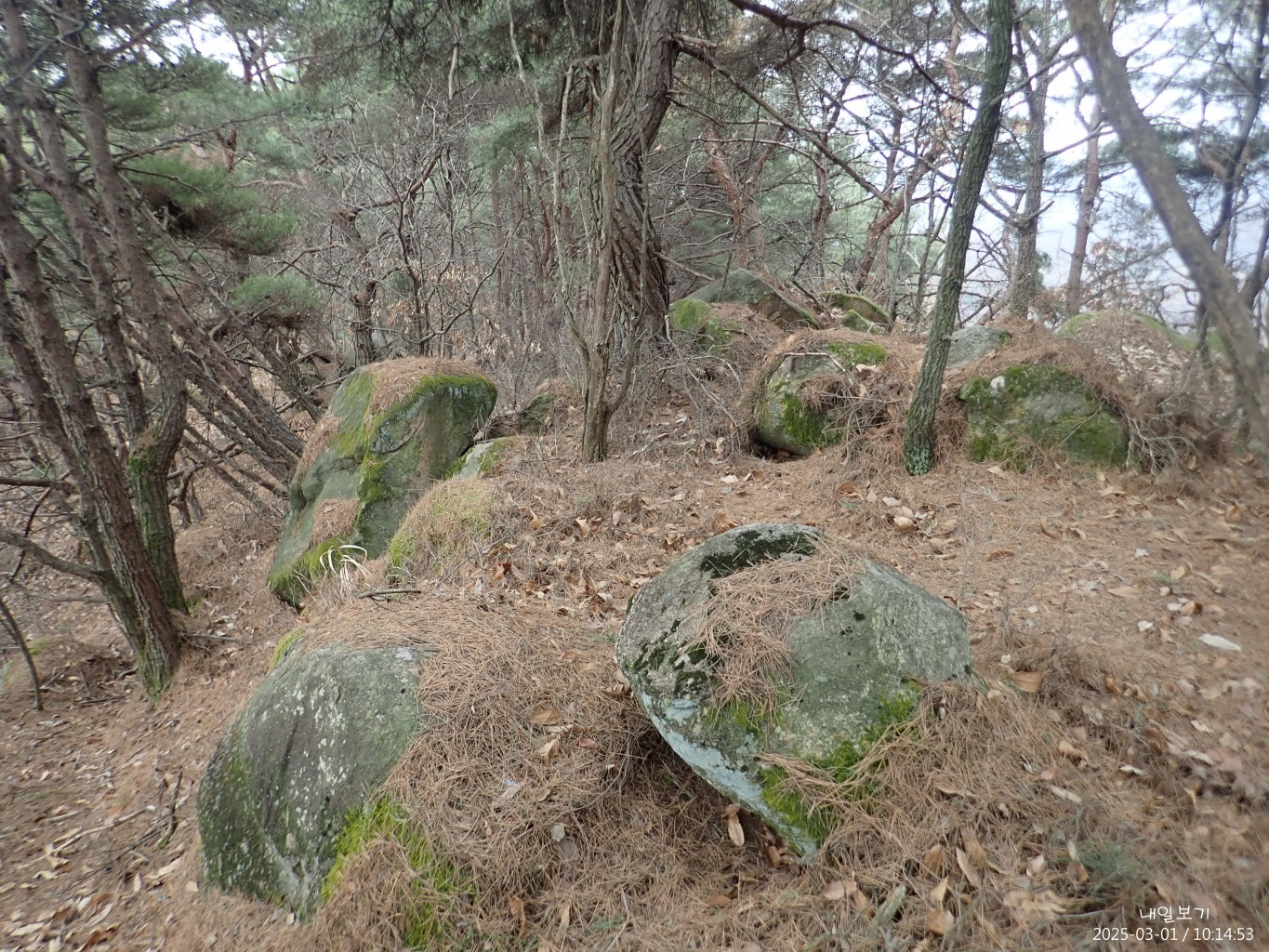 며느리재 아래. 넓적한 바위조각으로 축대처럼 쌓아 놨는데...(?) 앞에도 넓게 공터을 다듬어 놨고.