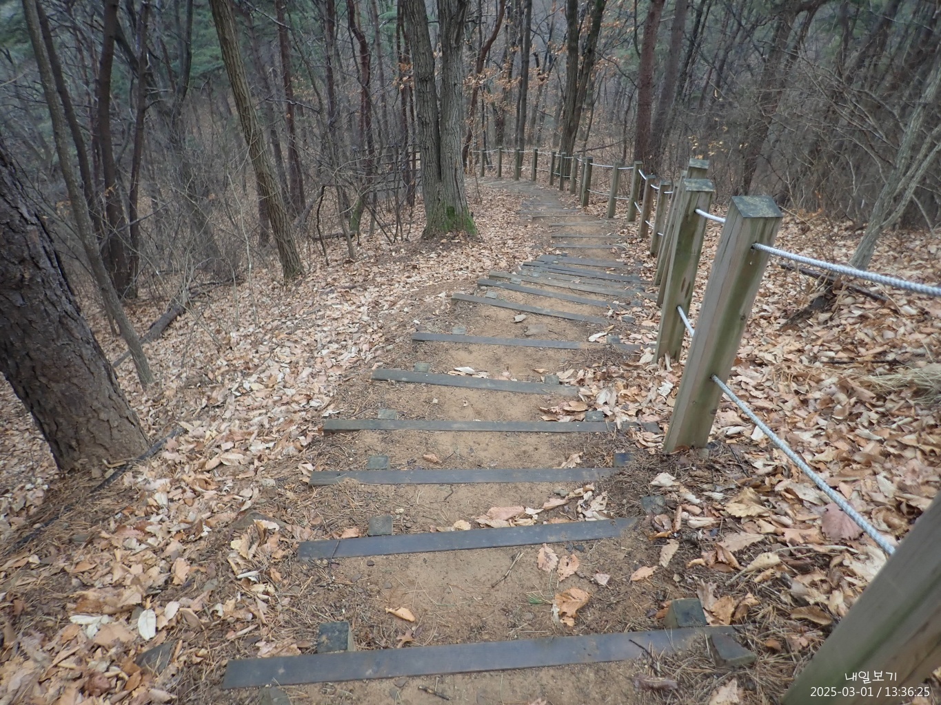 솔잎이 많이 쌓여있어 발밑이 푹신하다.