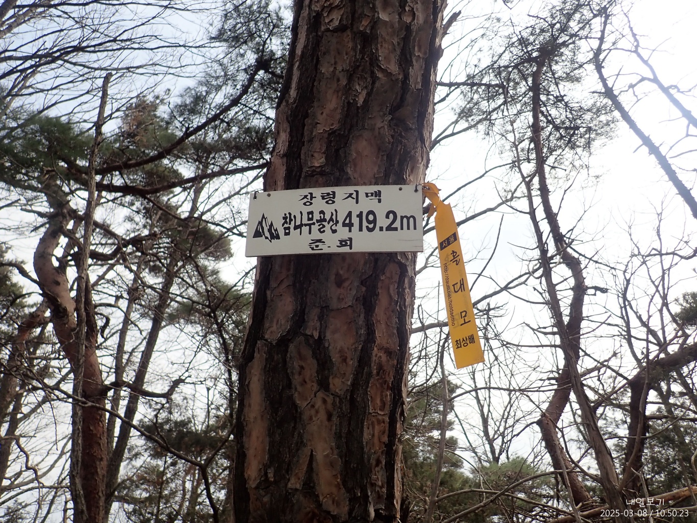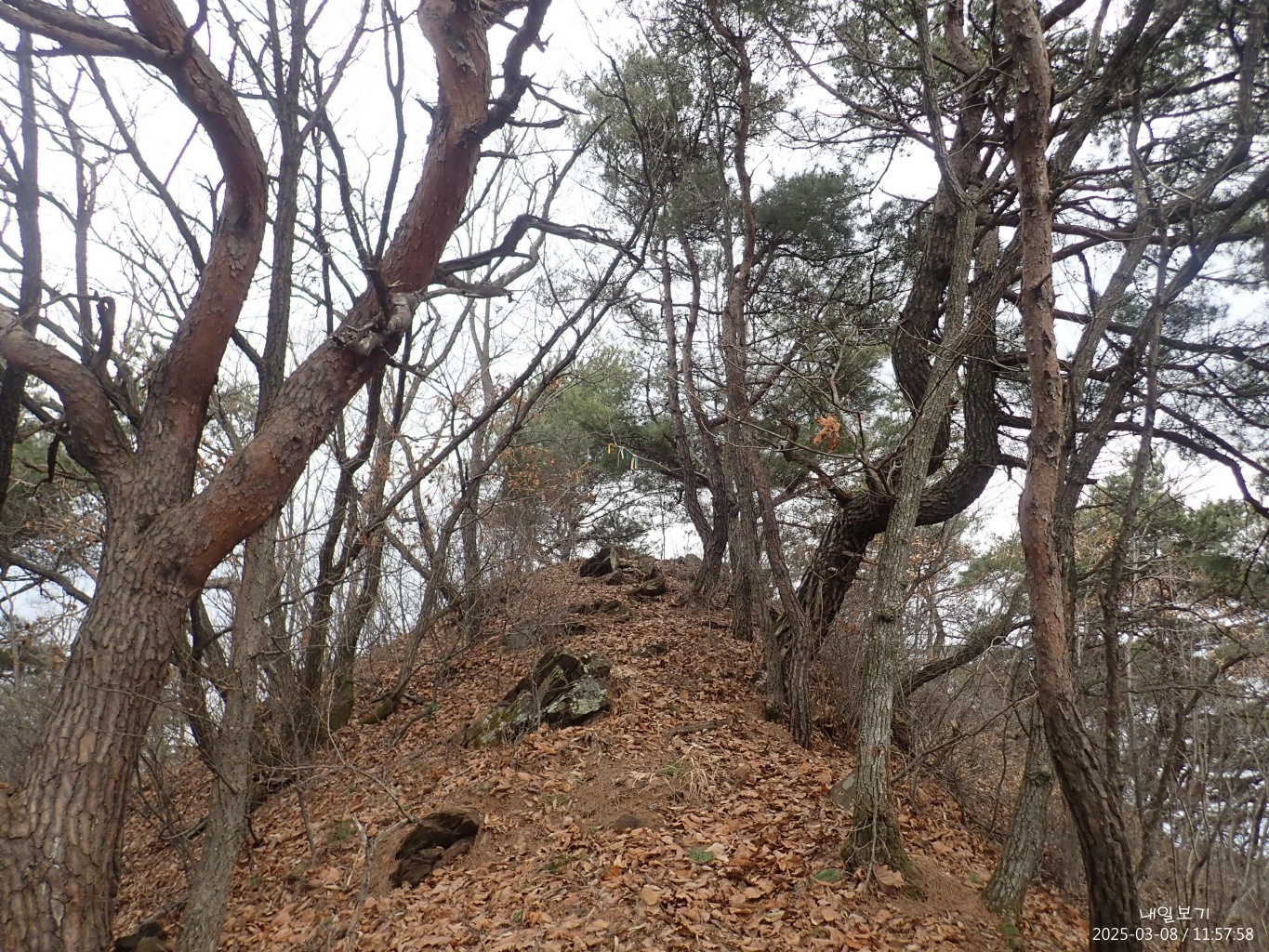 참나무골산 전위봉. 2Km가량 계속된 오름이다.