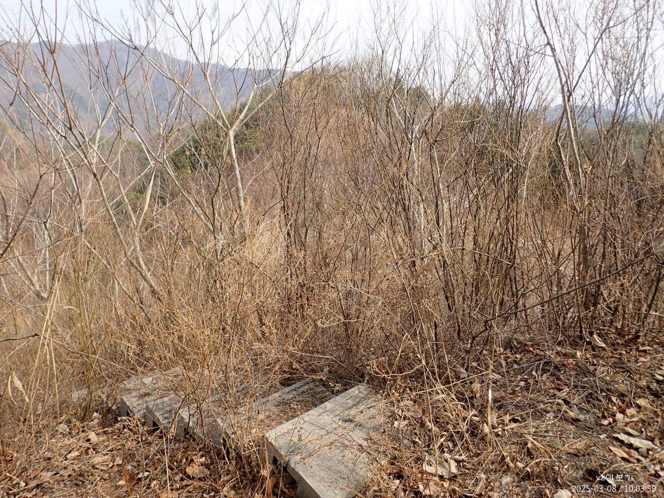 진행중 왼쪽 묘지있는곳에서 북동쪽. 신·구장계교와 좌중간 멀리 금적산.