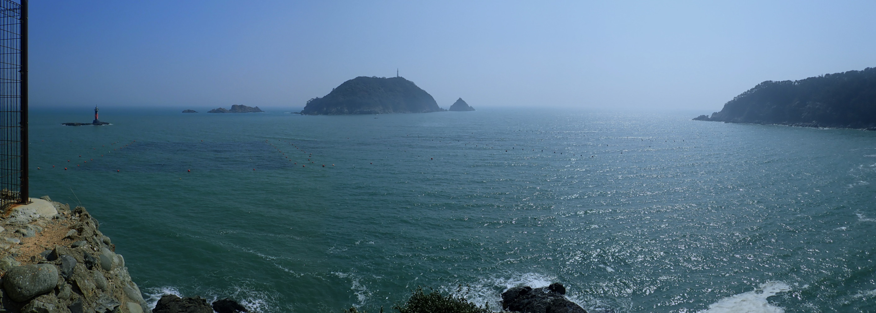 가운데 쥐섬(서도등대) 좌우로 동섬과 동호도.