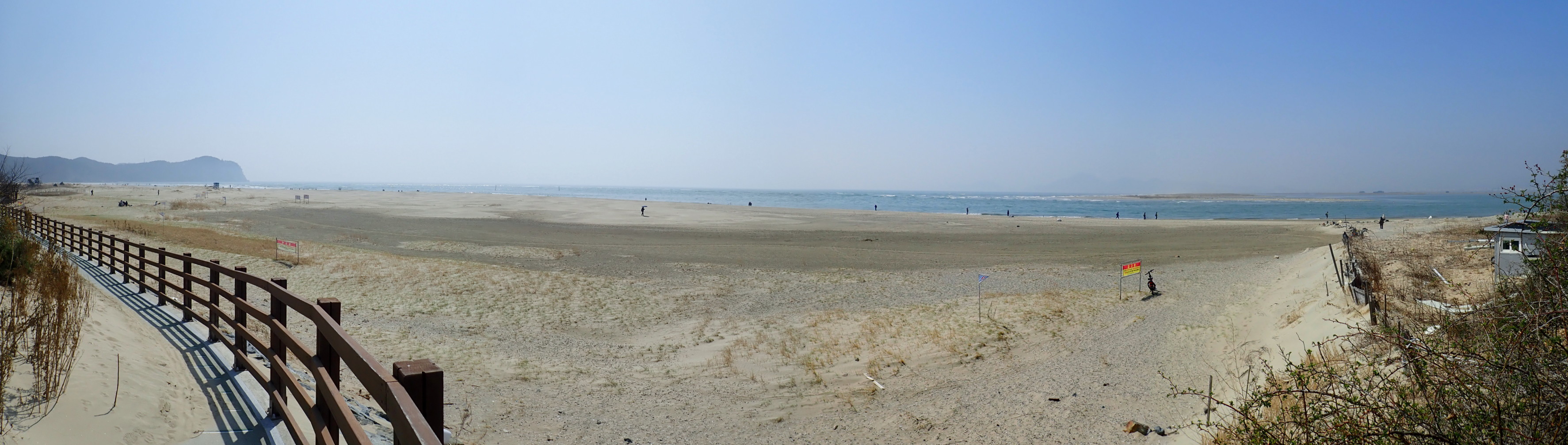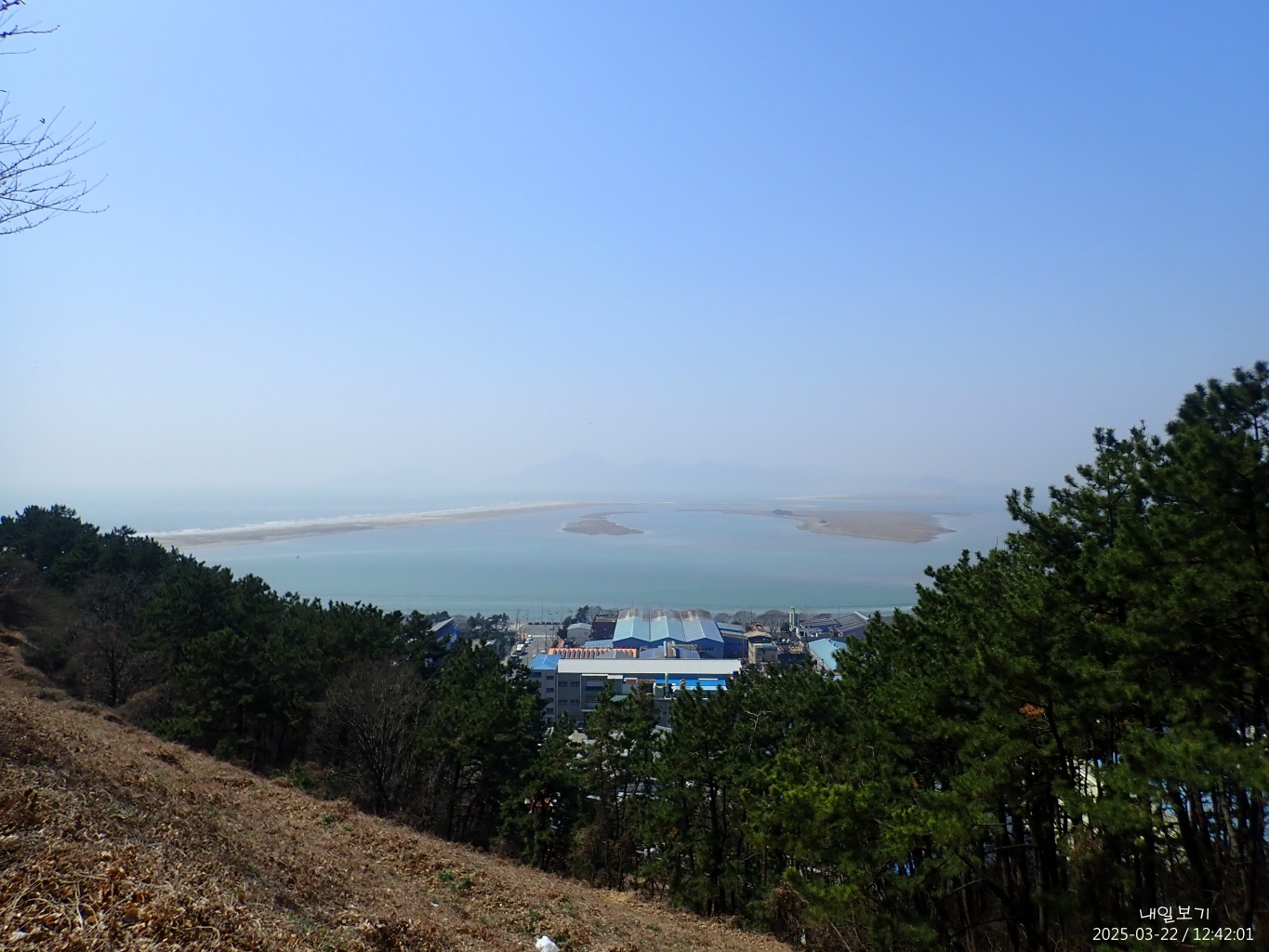 아래 산업단지와 낙동강하구 백합등(토사의 퇴적으로 형성된 모래섬)
