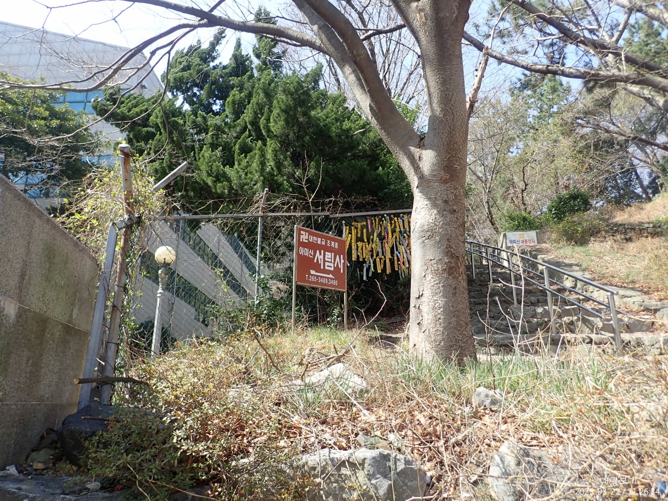 들머리. 파크병원 맞은편 아미까치공영주차장 오른쪽 축대옆.