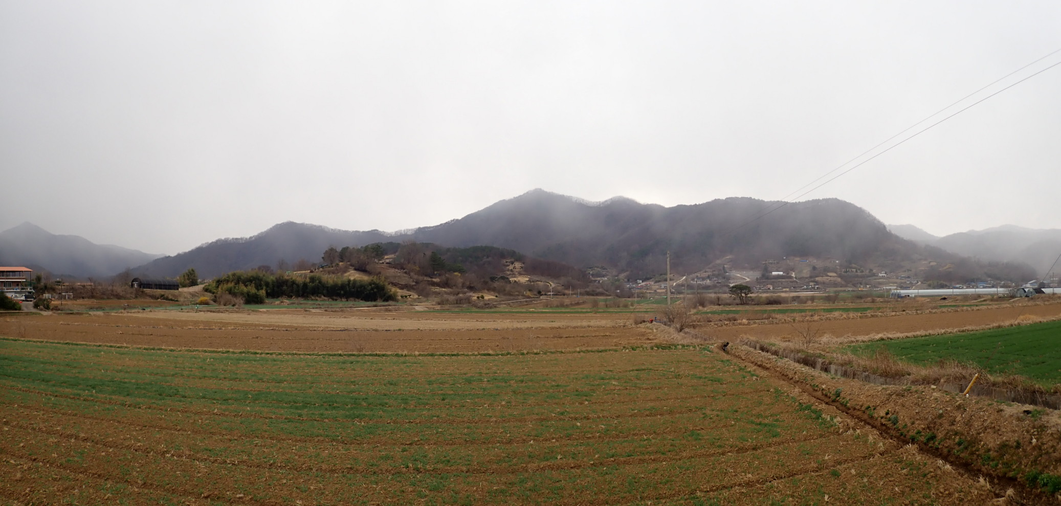 북서쪽. 왼쪽 봉긋한 옥봉산-좌중간 멀리 환산-우중간 이슬봉.