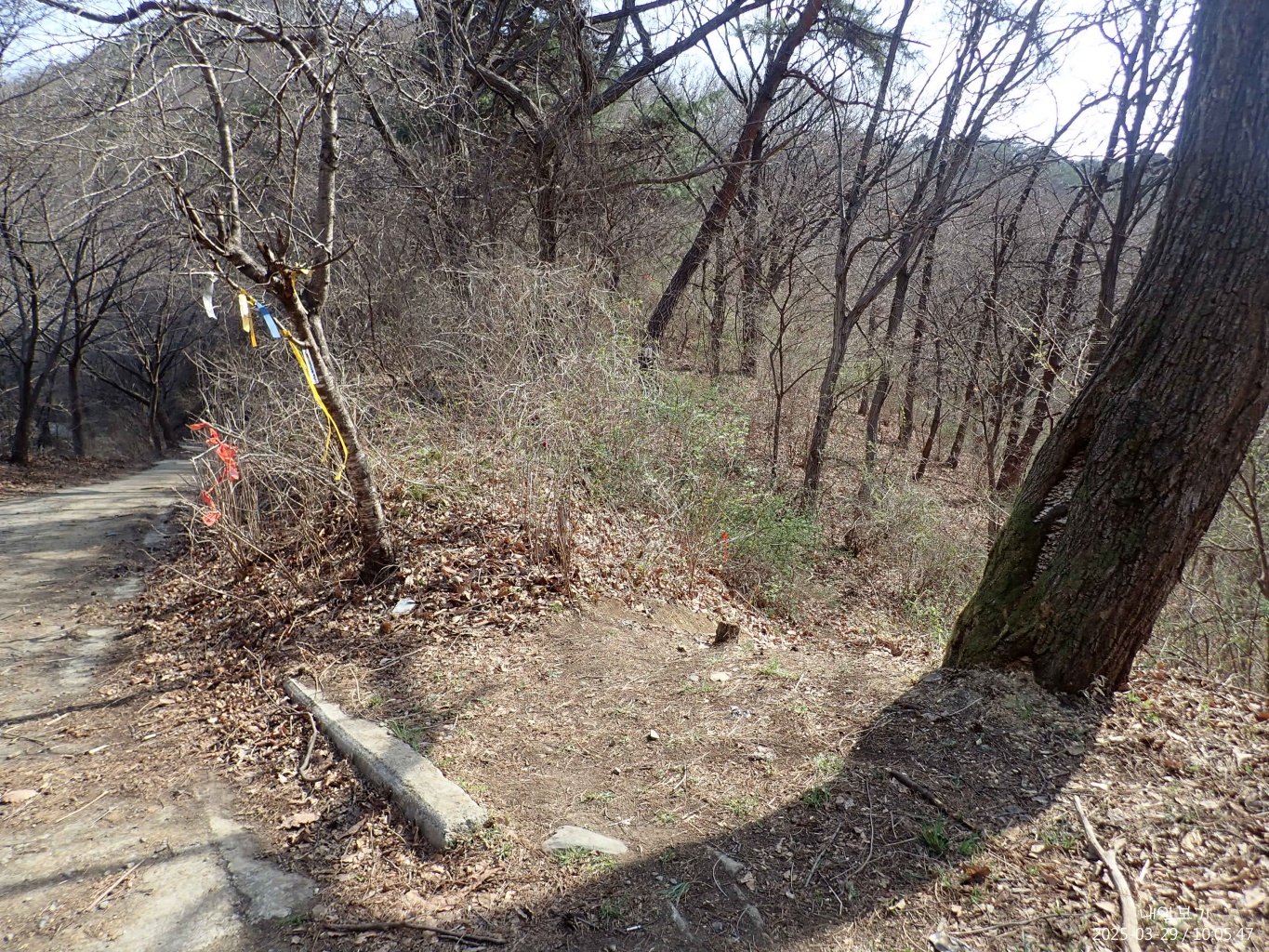 이곳에서 능선으로 오르면 303.2봉-487.9봉-444.2봉을 오를 수 있다.