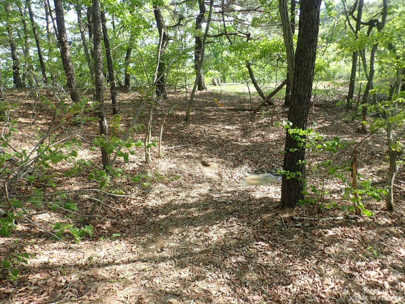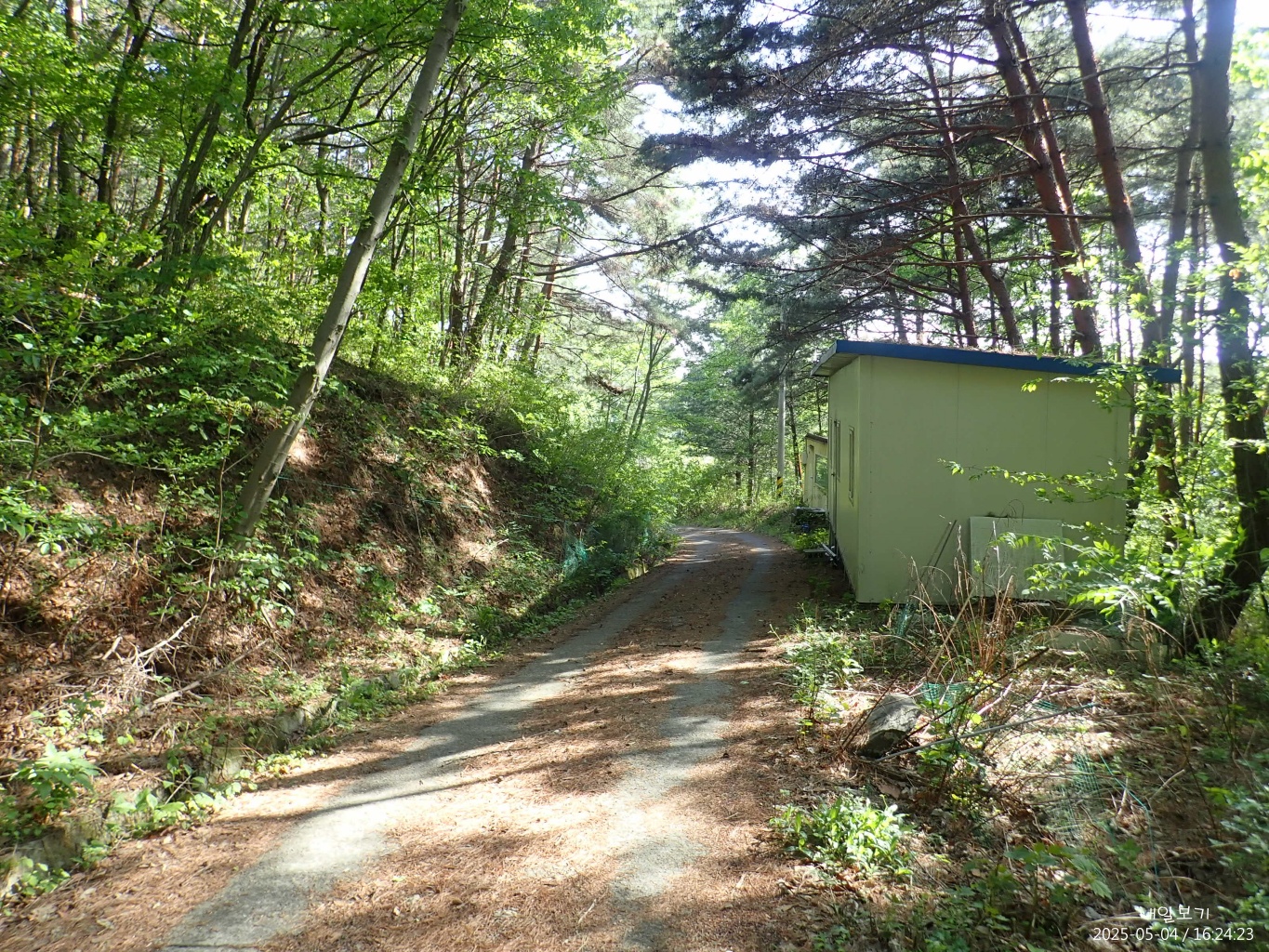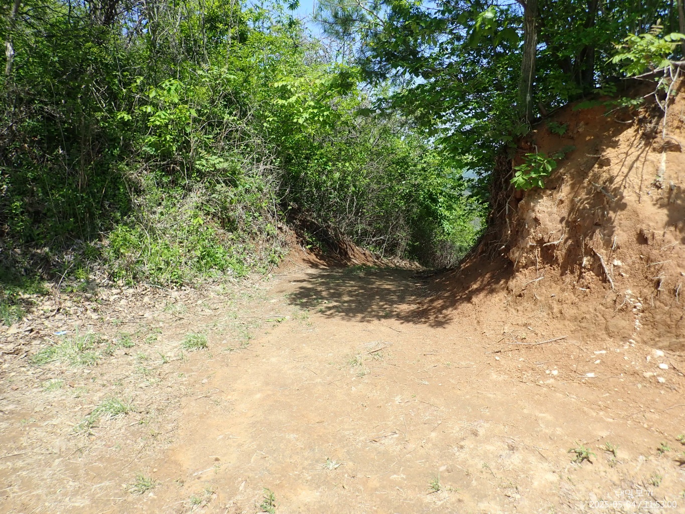 묘원뒤쪽에서 임도로 내려서는 길.