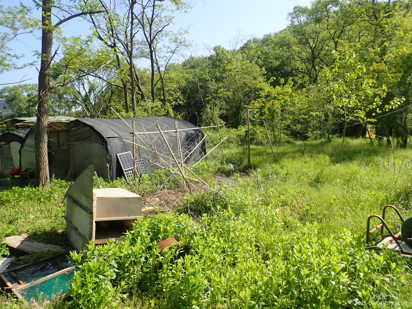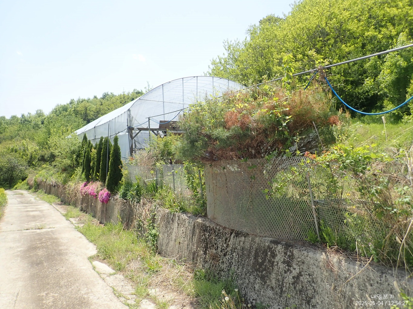 비닐하우스 지나 갈림길에서 왼쪽. 한여름엔 칡넝쿨로 오르기 힘들듯 하다.