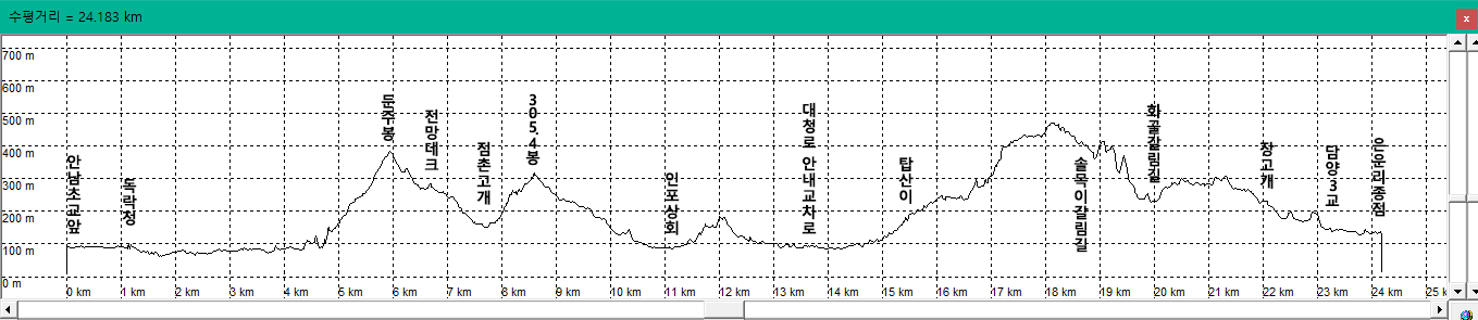 들머리. 안남초교앞. 왼쪽으로.