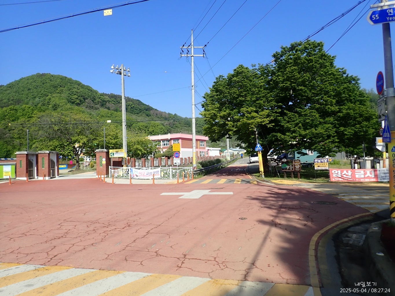 임도 내려서면 왼쪽에 인포교차로와 안내중학교가 보인다.