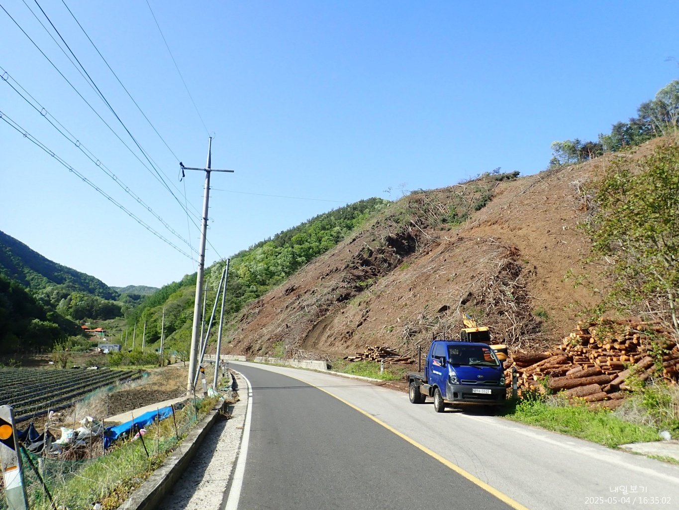 인포리 내려가는 길은 왼쪽 벌목지 능선으로 내려가도 되고, 왼쪽끝자락에서 좌틀에서 진행해도 된다.