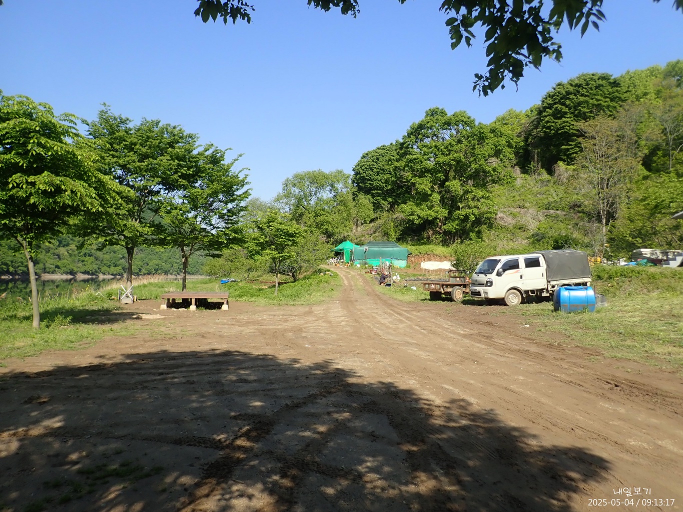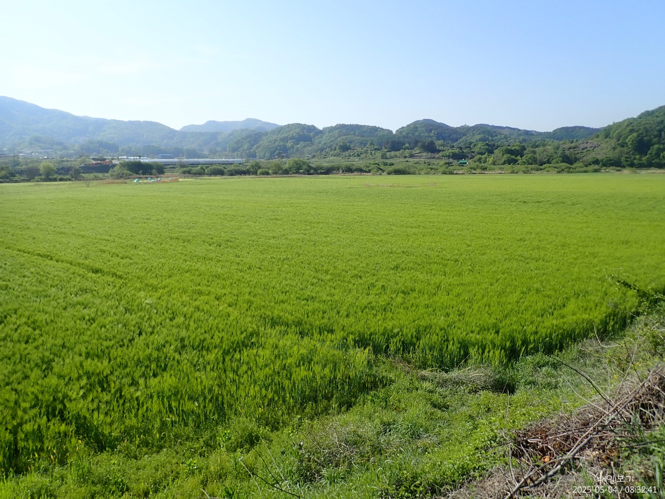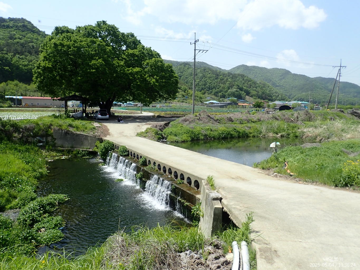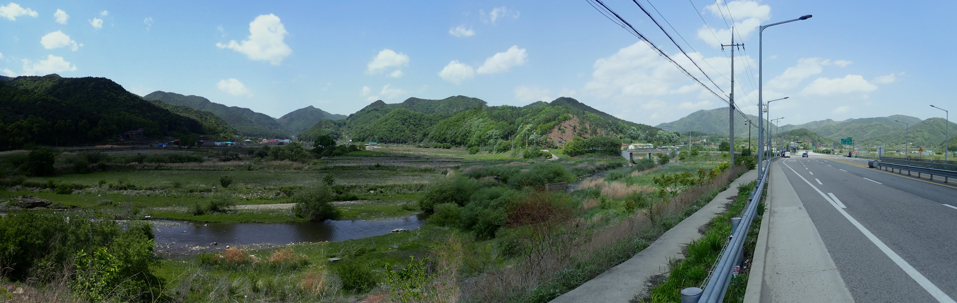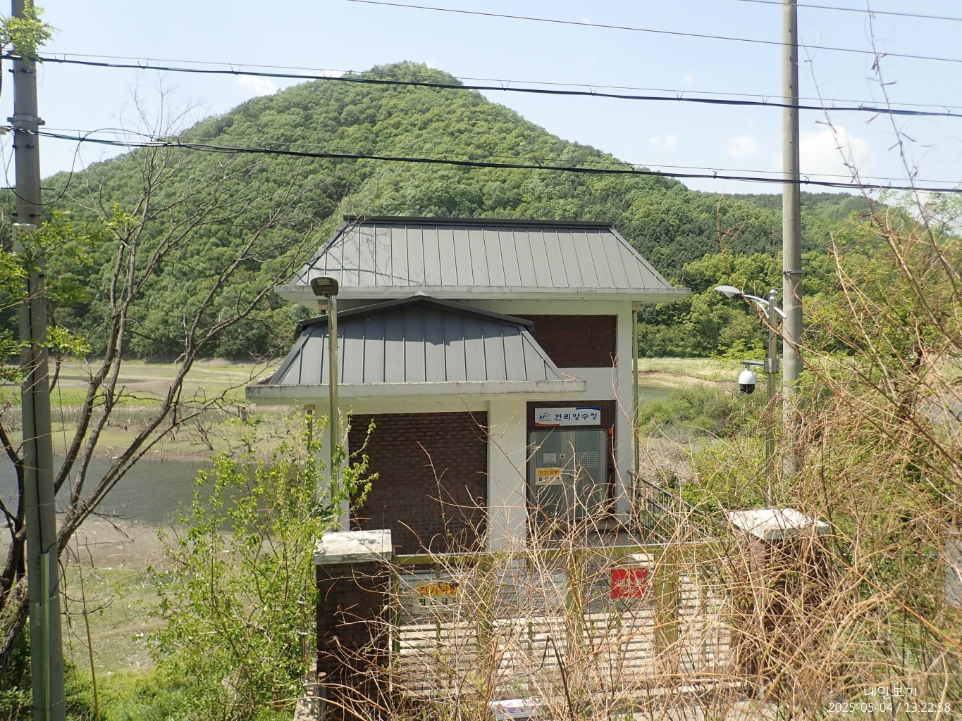 남쪽. 우중간 건물은 농업용 양수장.