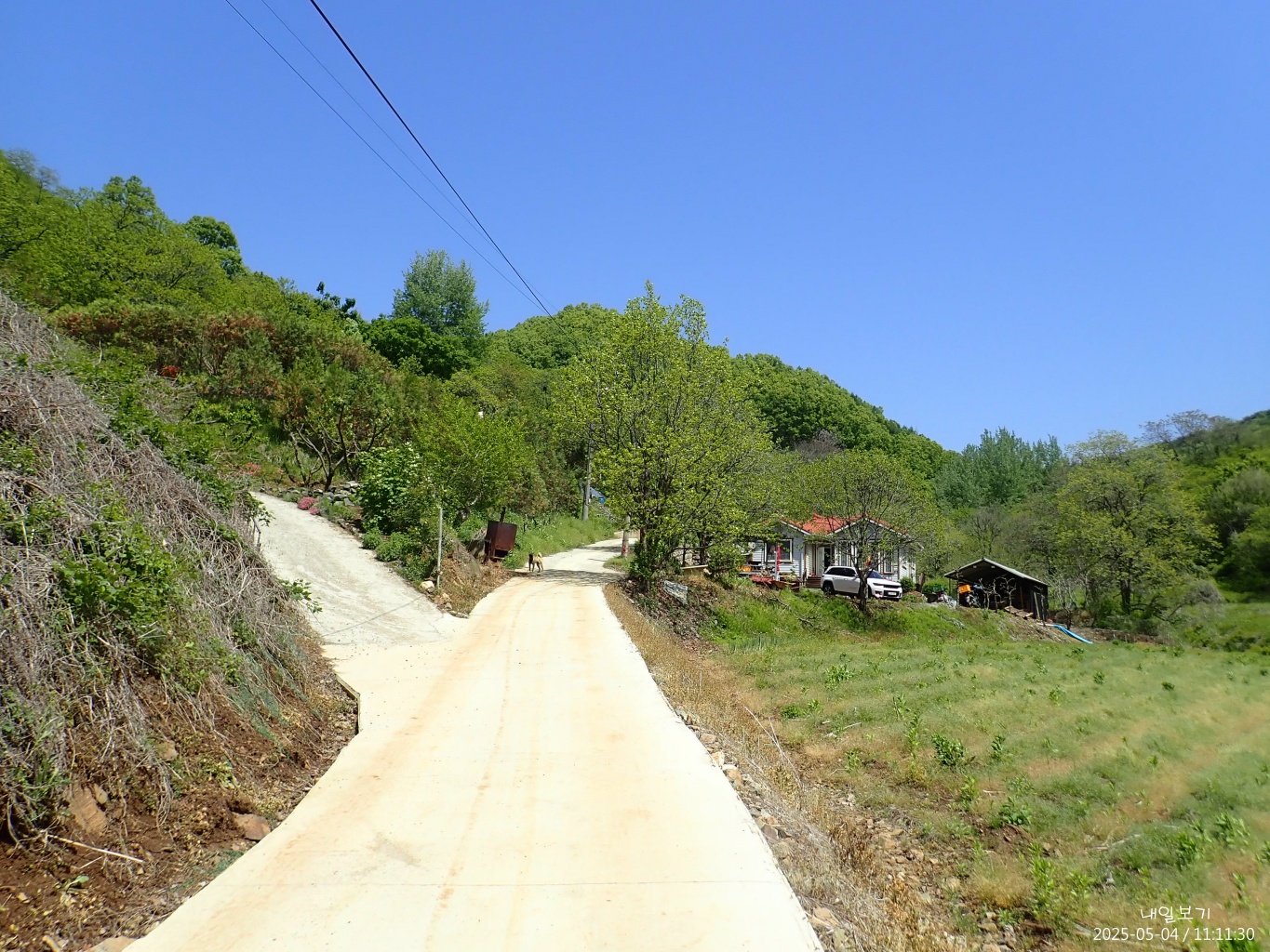 마을길. 저 앞에서 왼쪽으로.