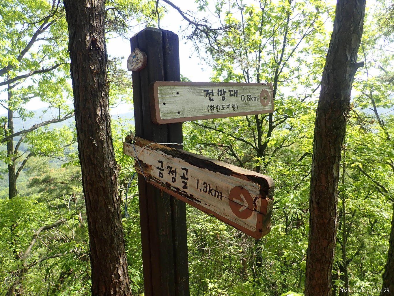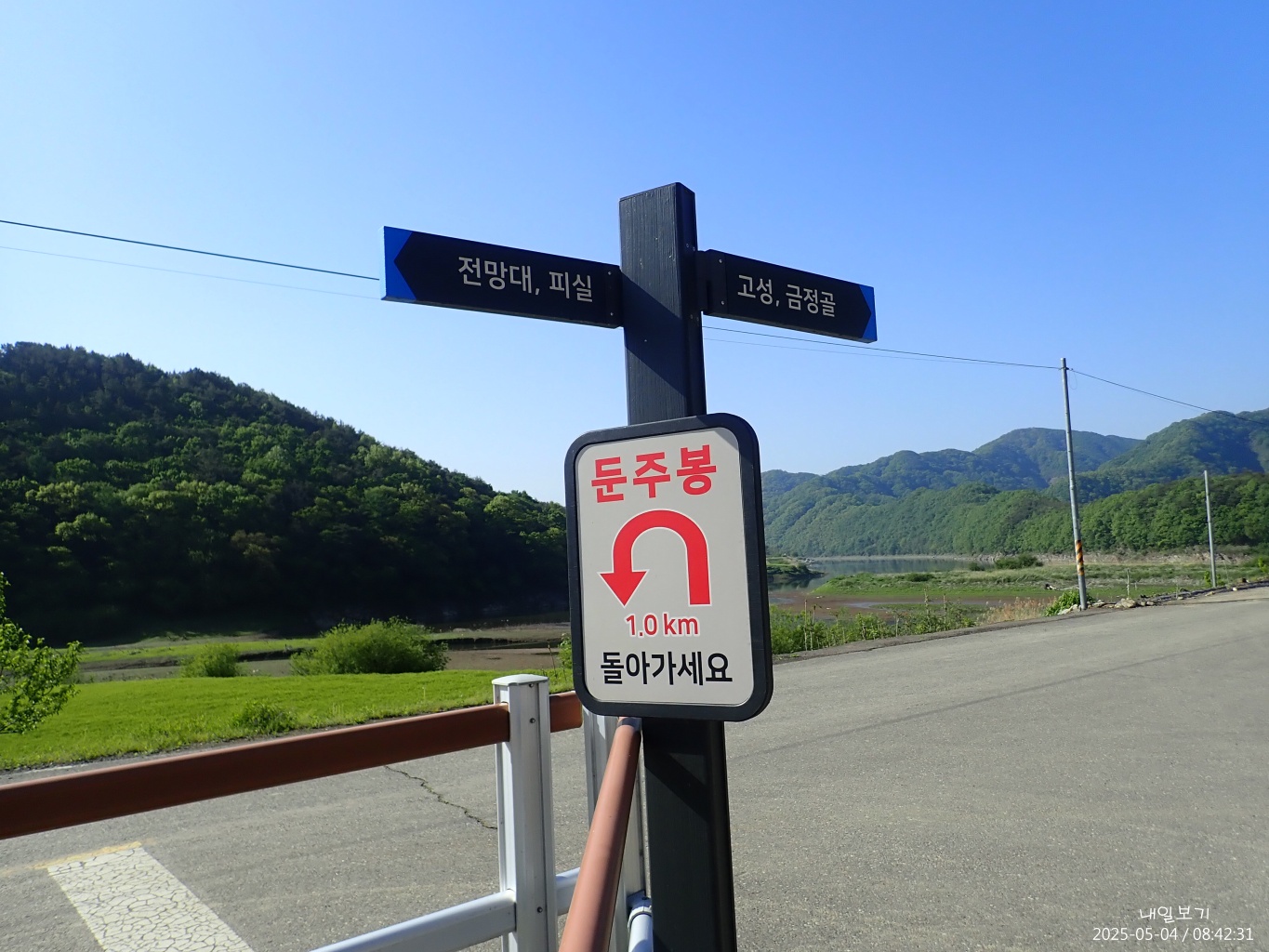 서쪽. 좌중간 한반도지형. 오른쪽에 둔주봉 정상방향.