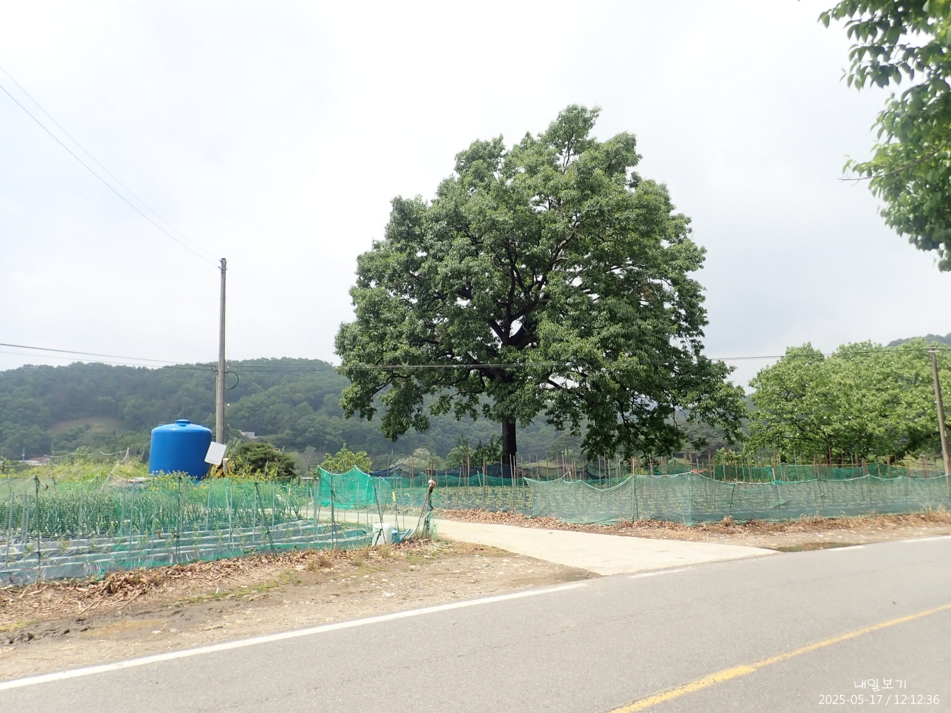 언목 삼거리에 커다란 느티나무. 이제 오르막이 시작된다.