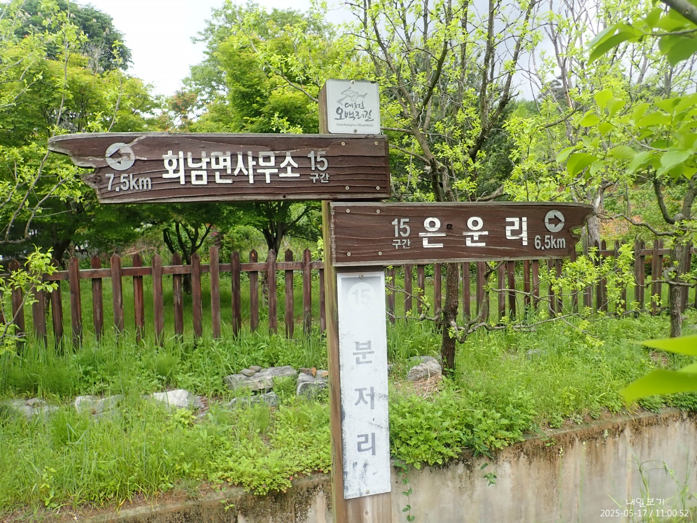 15구간은 보은군으로 회남면사무소에 가면 대전-보은간 63번 버스가 있어 다행인데, 16구간 이후는 대중교통이용이 쉽지 않다.