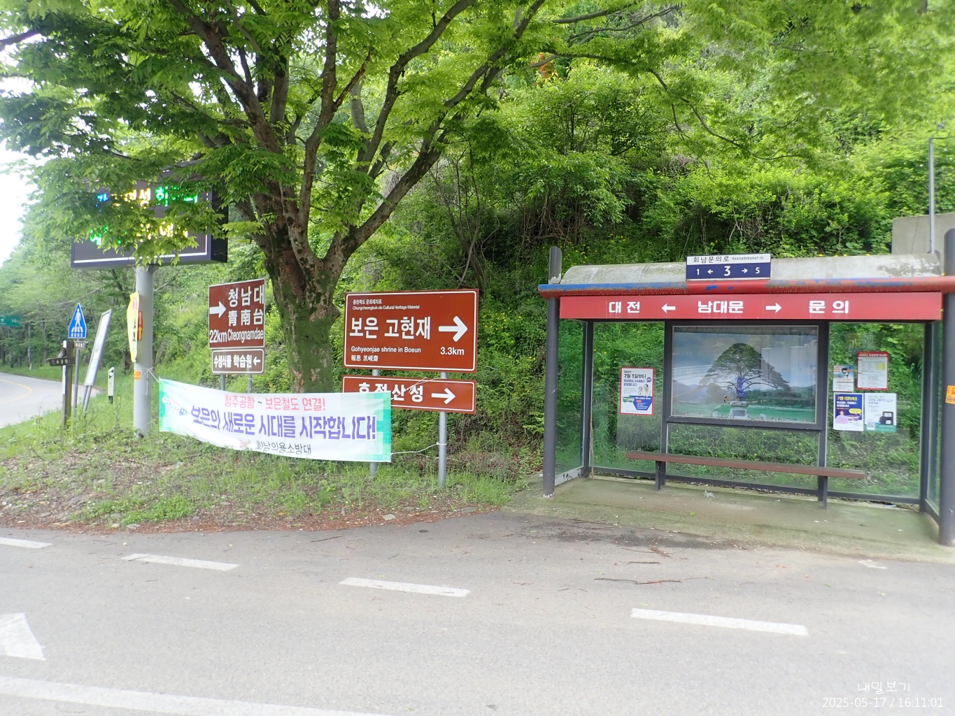 16구간은 청주(문의면)와 보은(회남면)의 경계를 넘어 가게되서 청주쪽 버스를 이용해야 하는데, 16구간과 17구간의 소전리행 버스는 문의-후곡리간 31번을 이용하면 되지만 문의-대전간에는 청주를 경유해야 하는데...