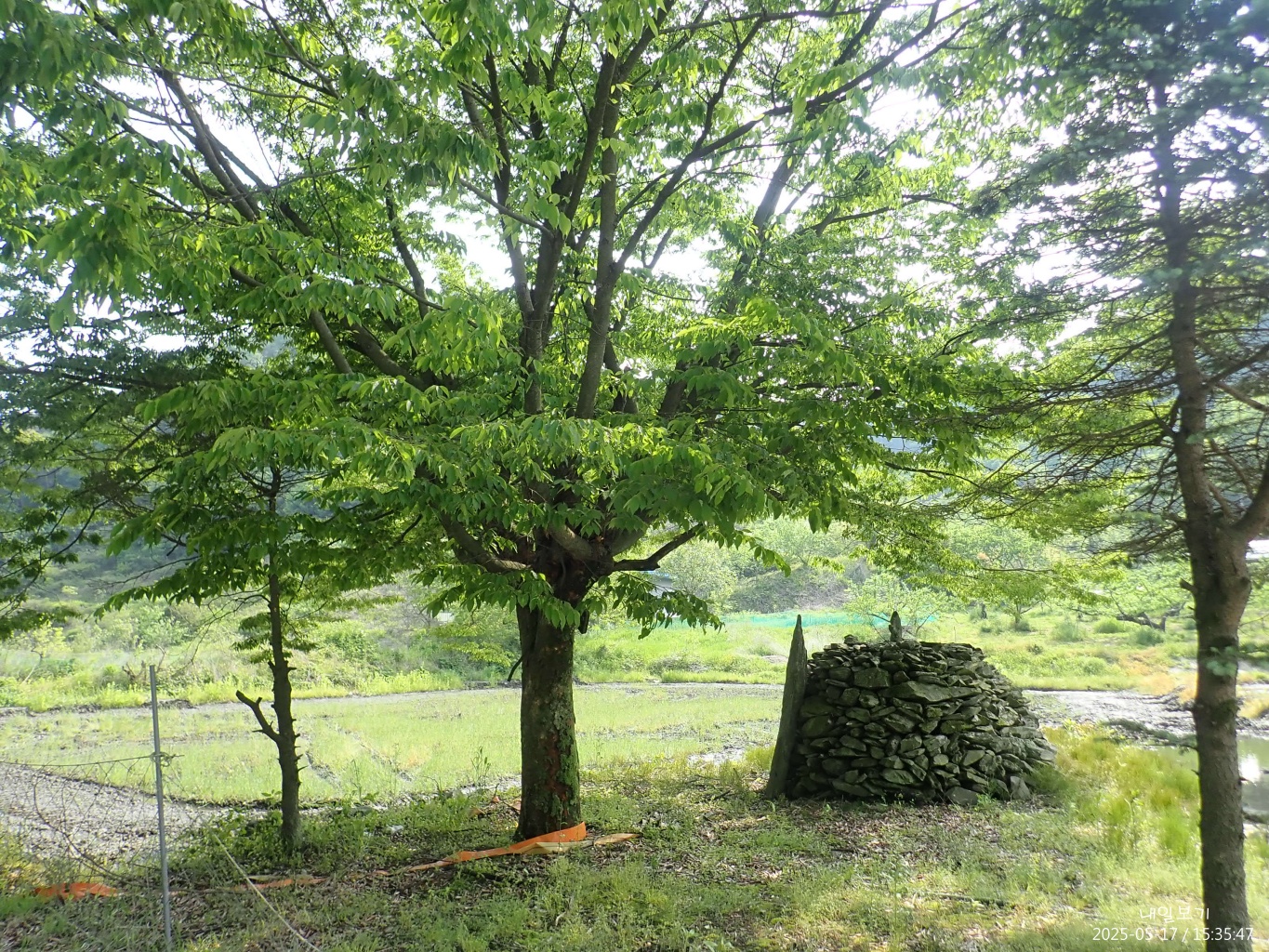 언목 삼거리에 커다란 느티나무. 이제 오르막이 시작된다.