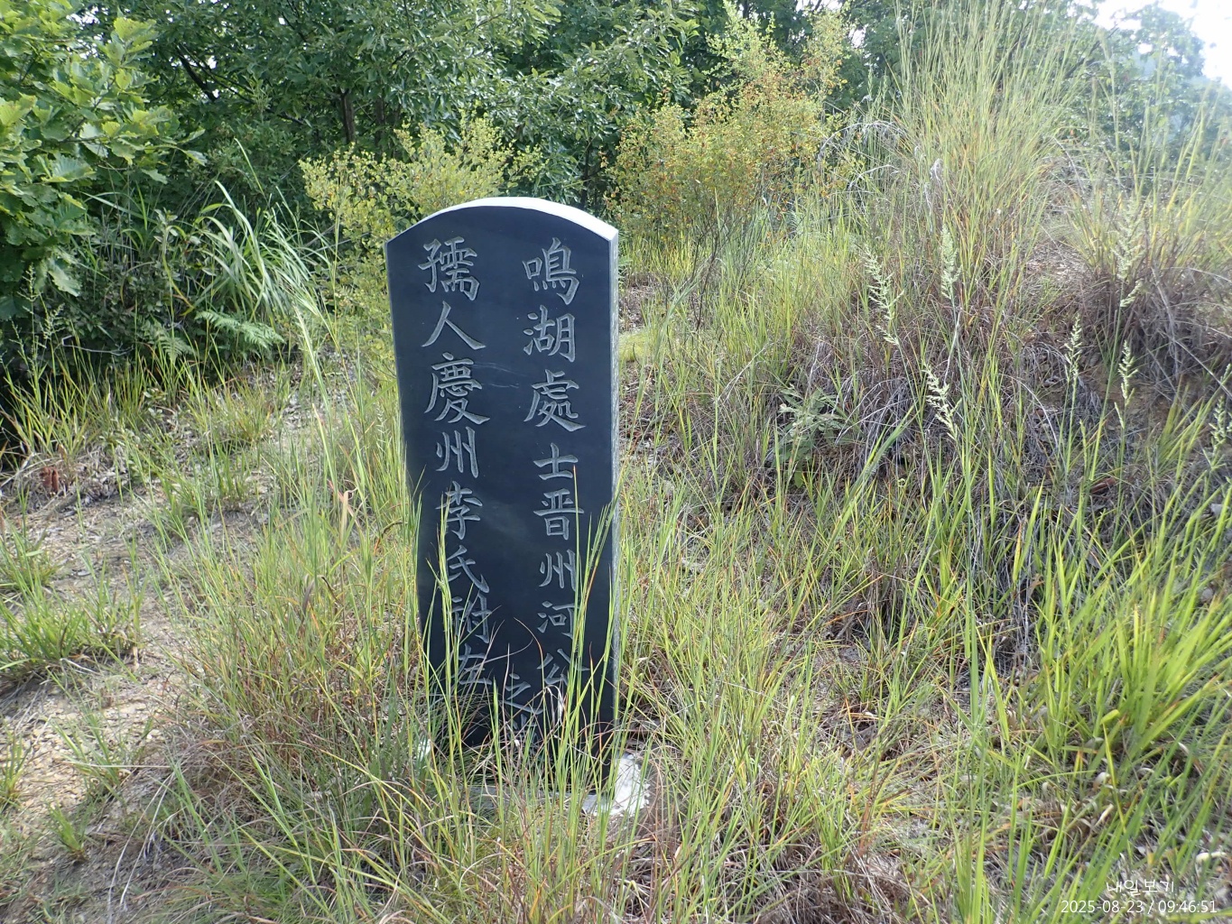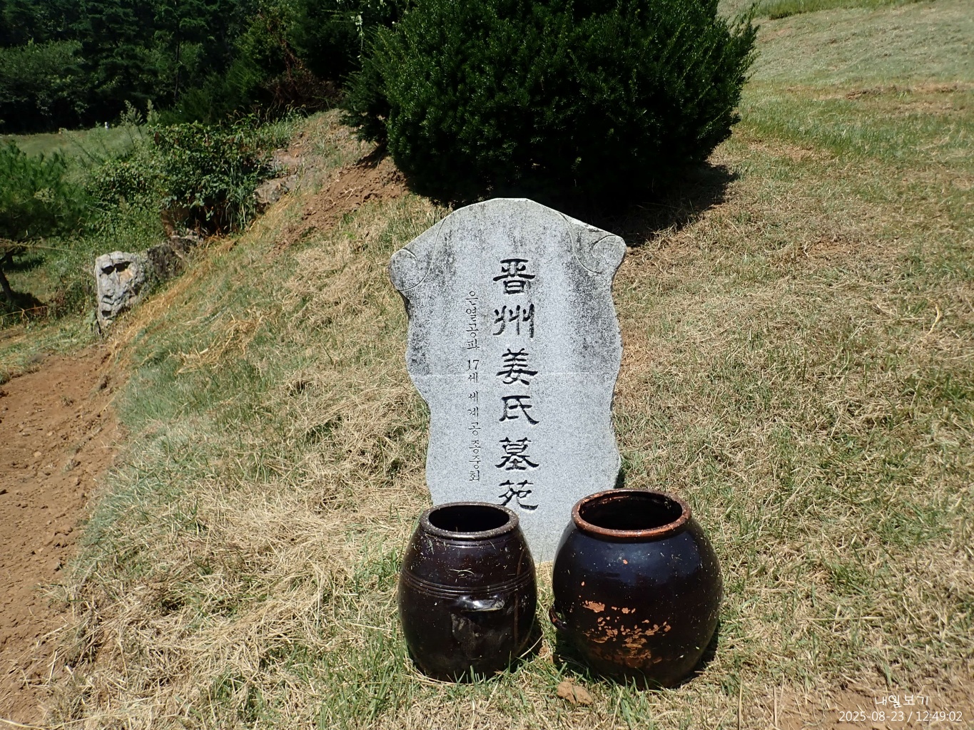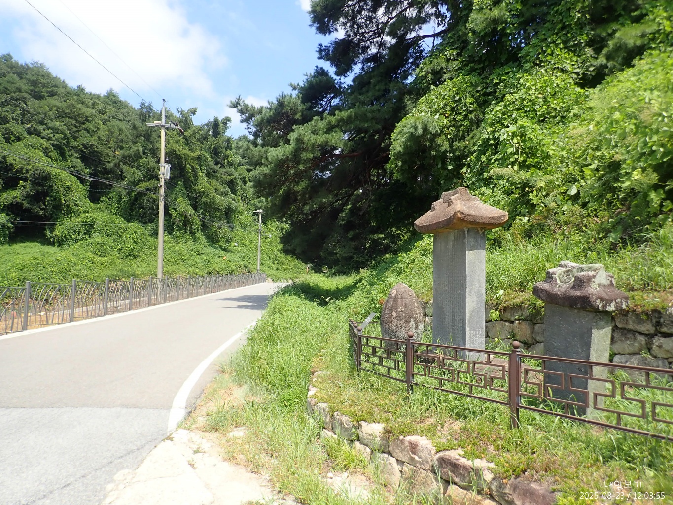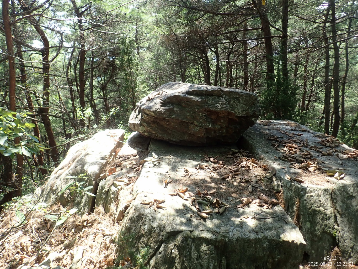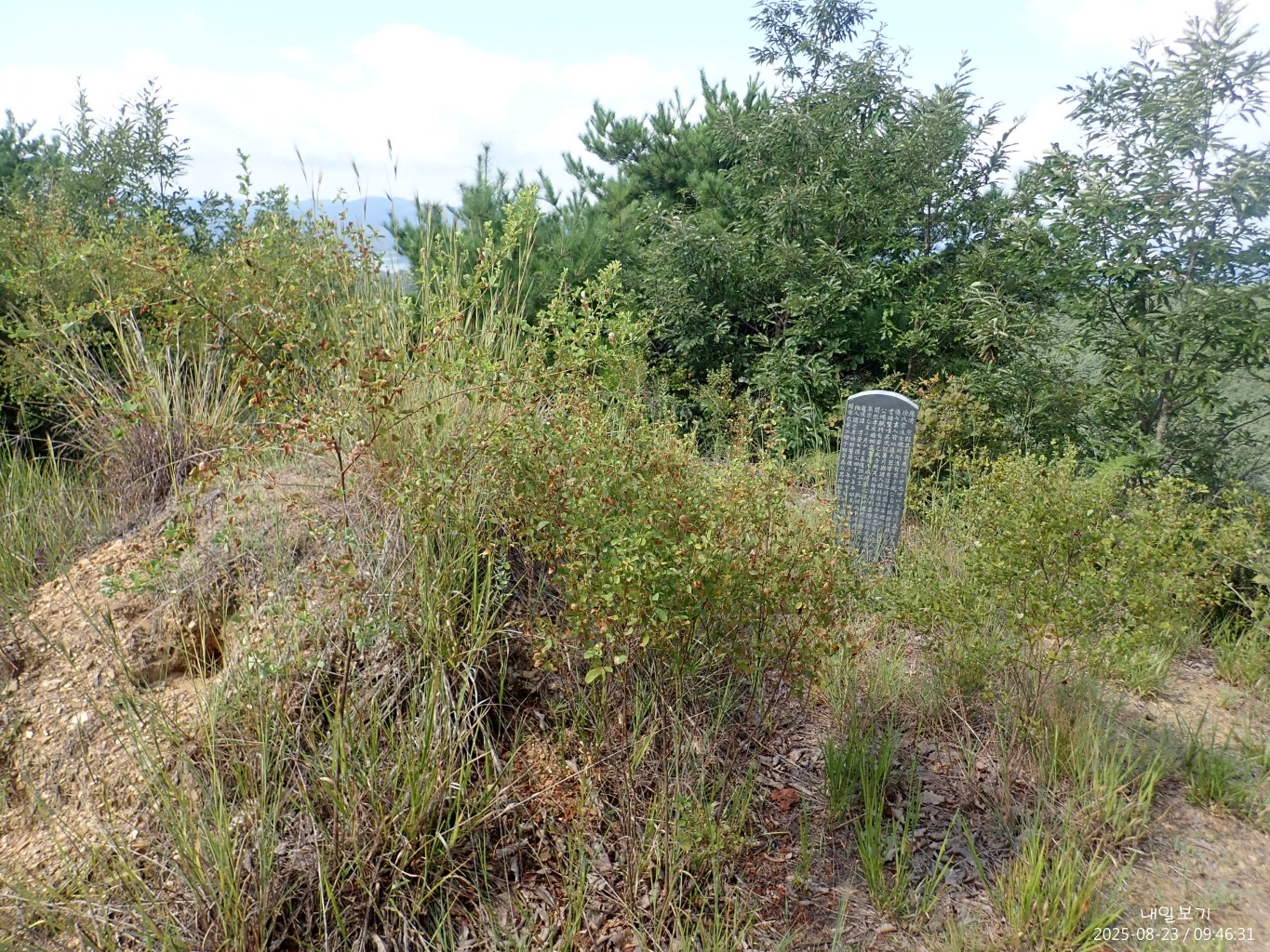 정상석 북동쪽으로 정자가 보이고.