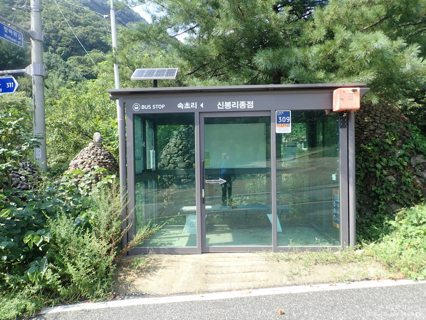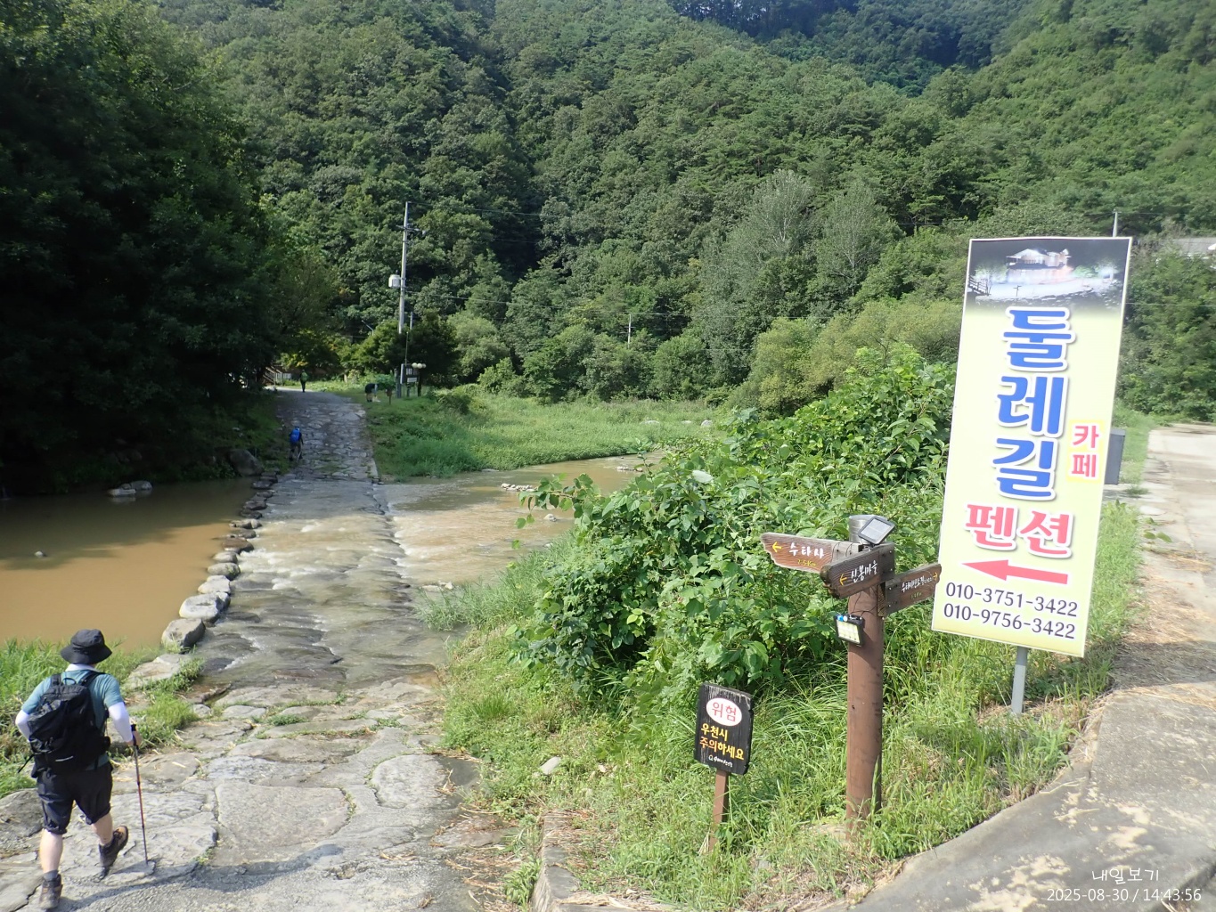 예상치 않은 길로 내려오다 보니 생각없이 신봉교를 넘었다. 다시 되돌아와 둘레길펜션쪽으로.