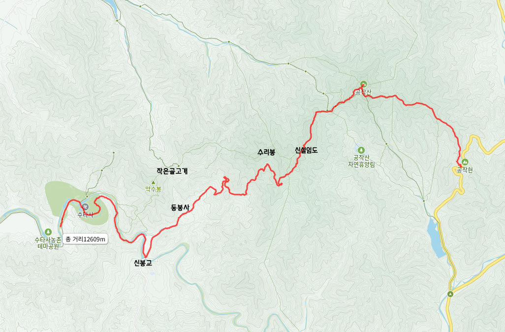 2023년 공작산환종주때 오성산-공작현구간을 가지 못했기에 공작산이나 가보자. 출발했는데 중간에 길선택을 잘못하는 바람에 엉뚱한 질을 헤메다 내려왔다.