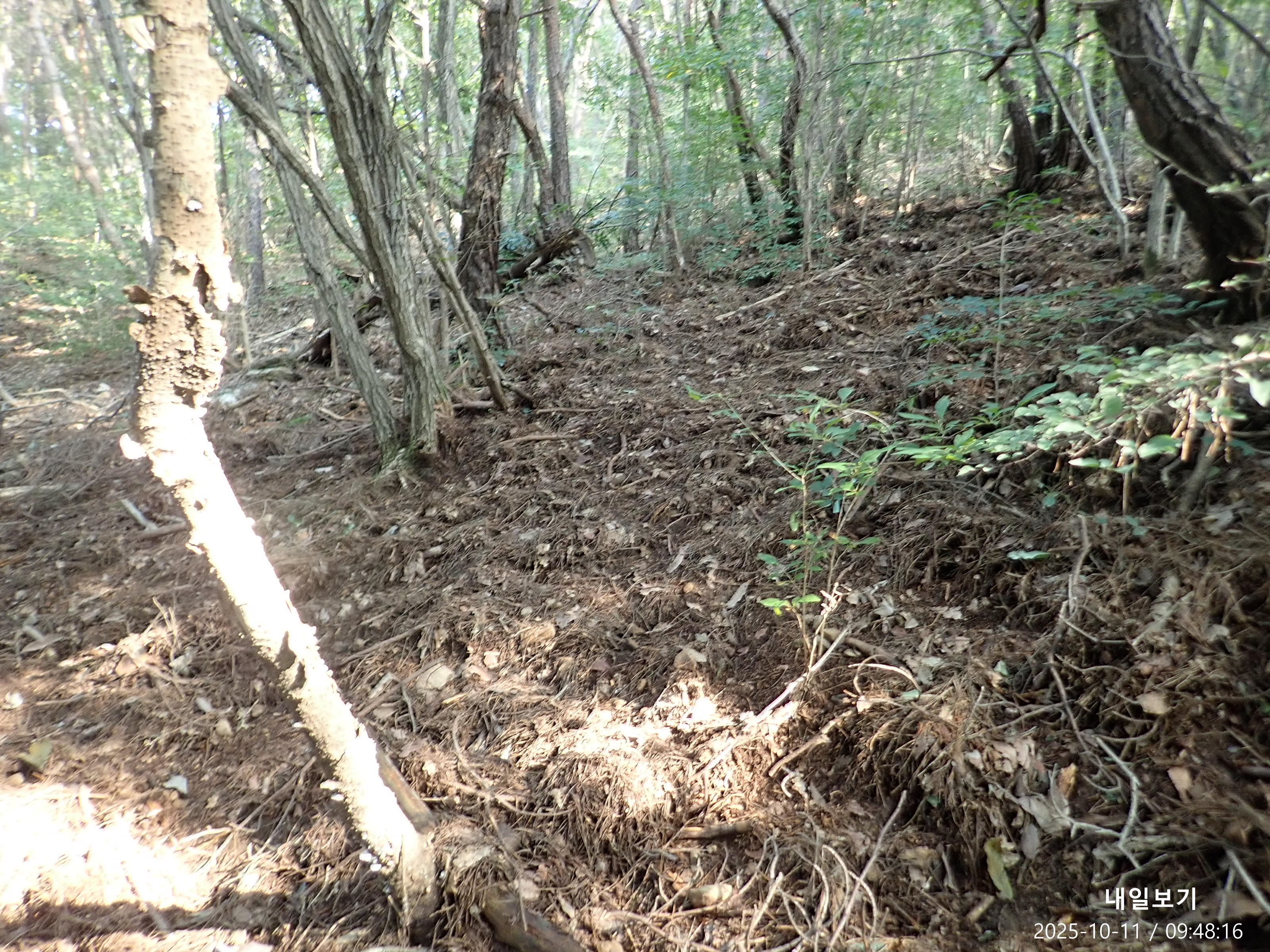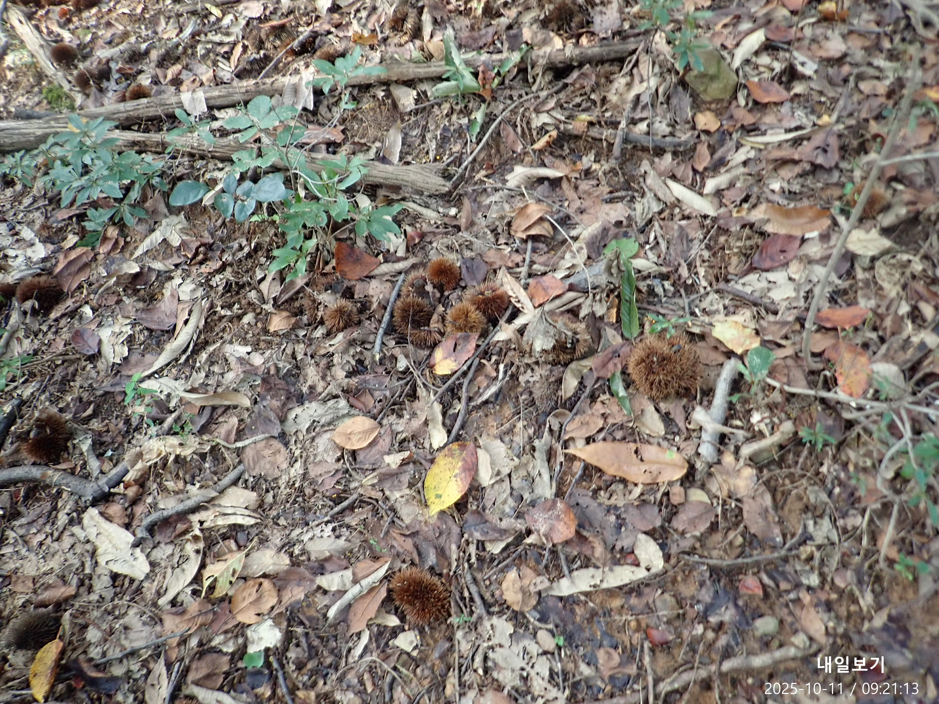 안내도엔 문의대교쪽 산길이 표시되지 않아 잠시 고민. 왼쪽으로 올랐는데 밤밭에 길이 어지럽다. 곧장 큰길로 올랐어야 했는데.