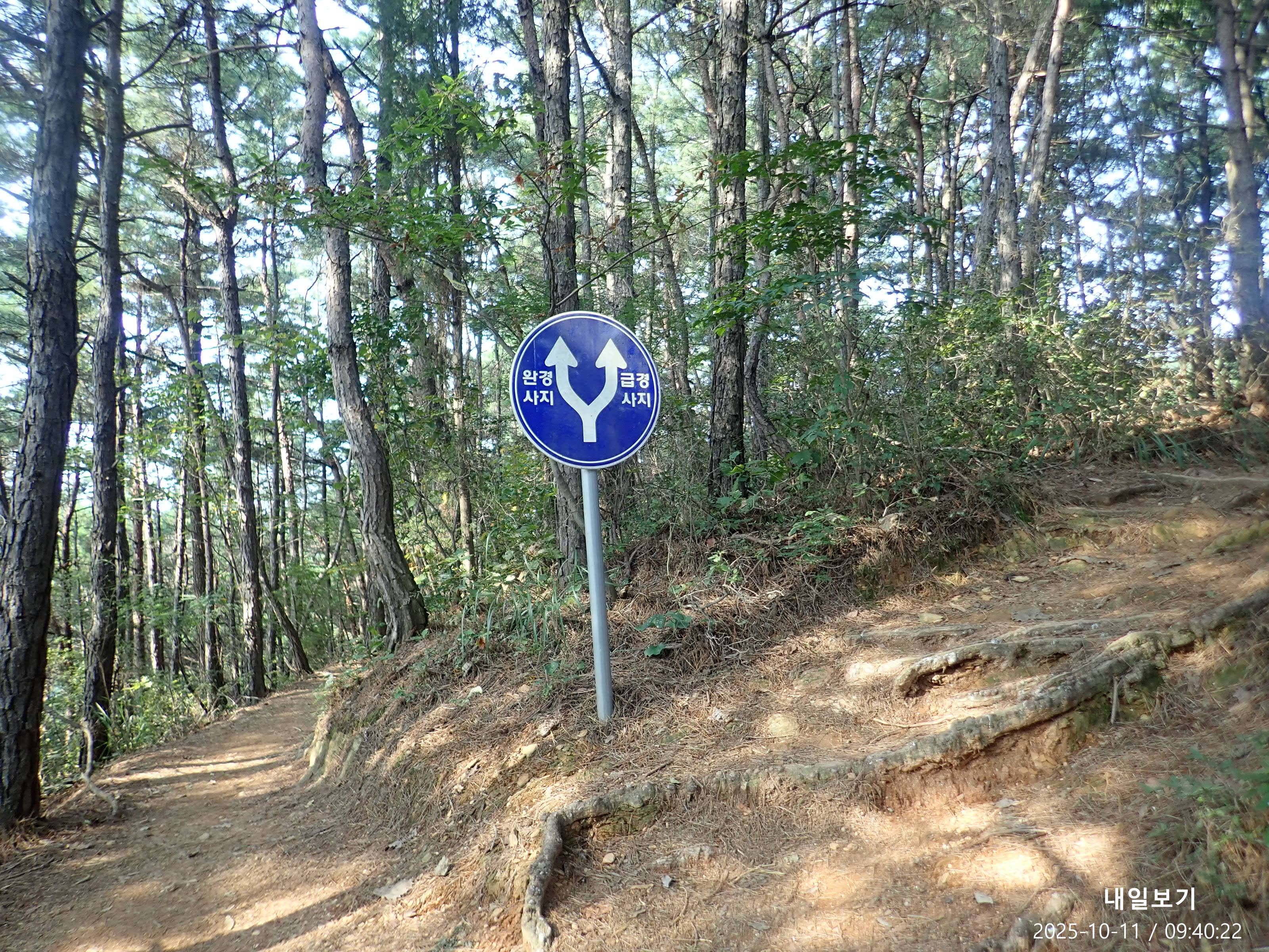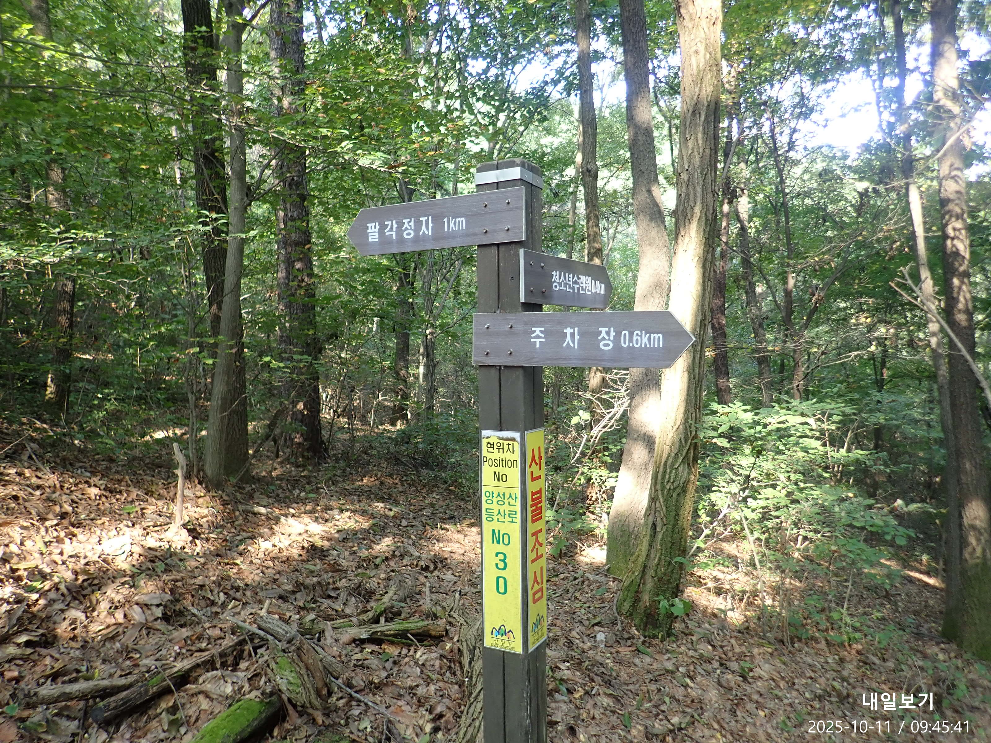 갈림길에서 팔각정과 양성산 사이 안부로 올라 주차장쪽으로 진행.
