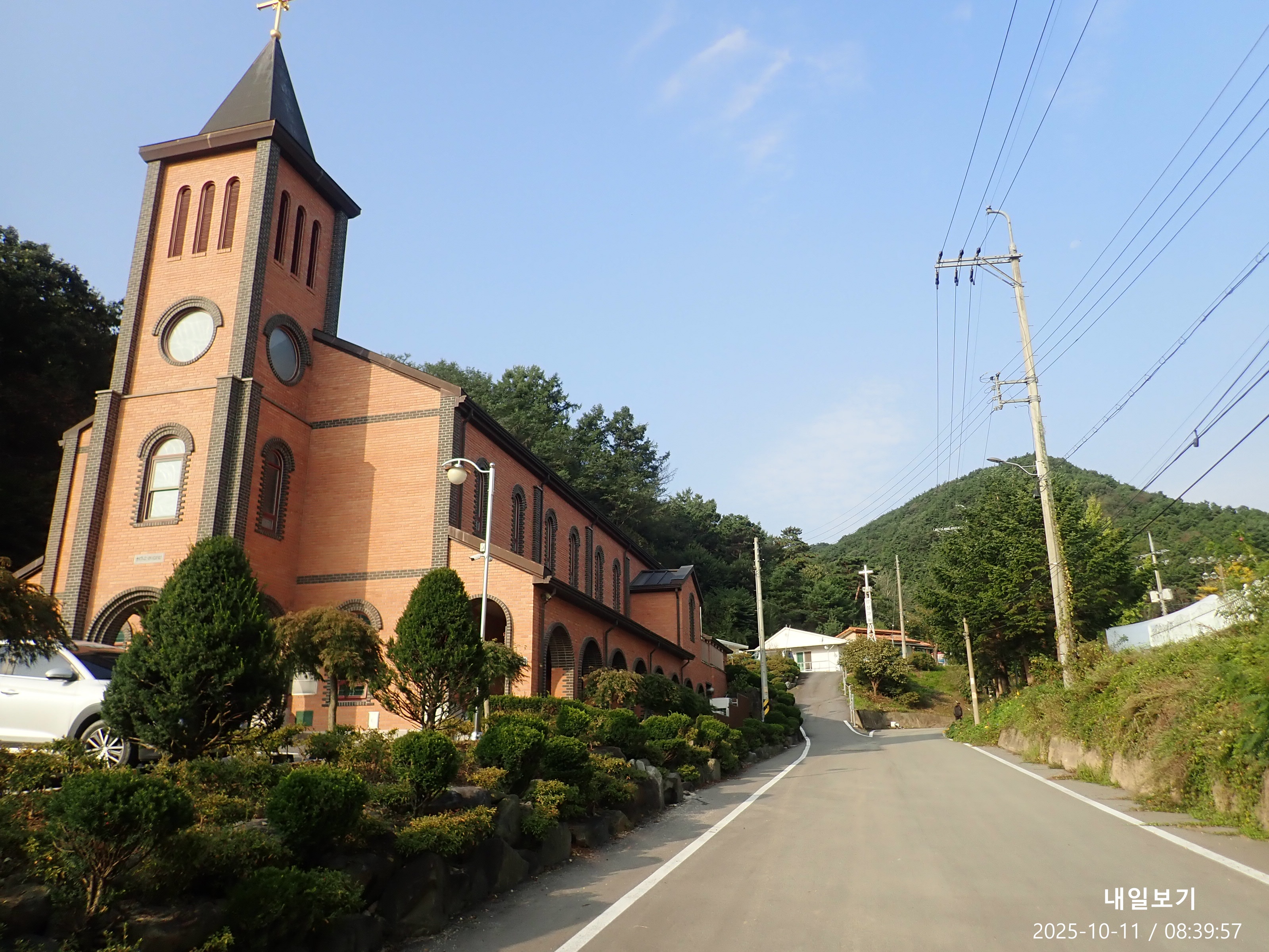 왼쪽건물은 문의성당. 저 앞에 양성교회. 교회전에 오른쪽길로.