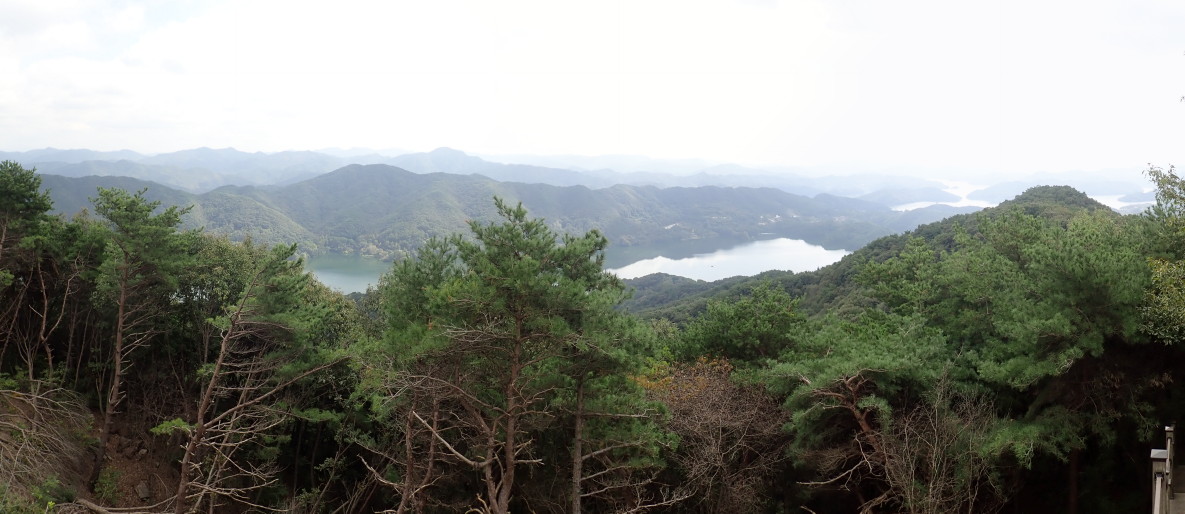 북동쪽. 문의면소재지와 대청호. 멀리 한남금북정맥 산군.